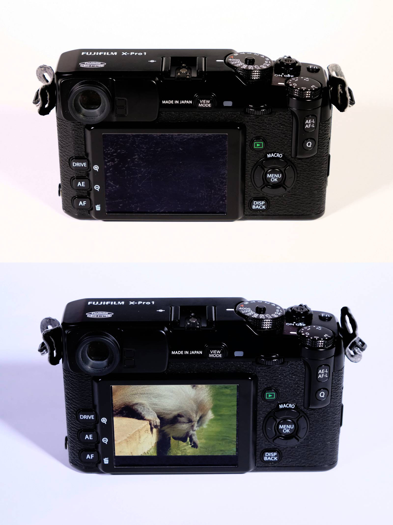 Das Display wirkt ausgeschaltet etwas abgenutzt, im eingeschalteten Zustand ist davon nichts zu sehen (siehe Fotos).