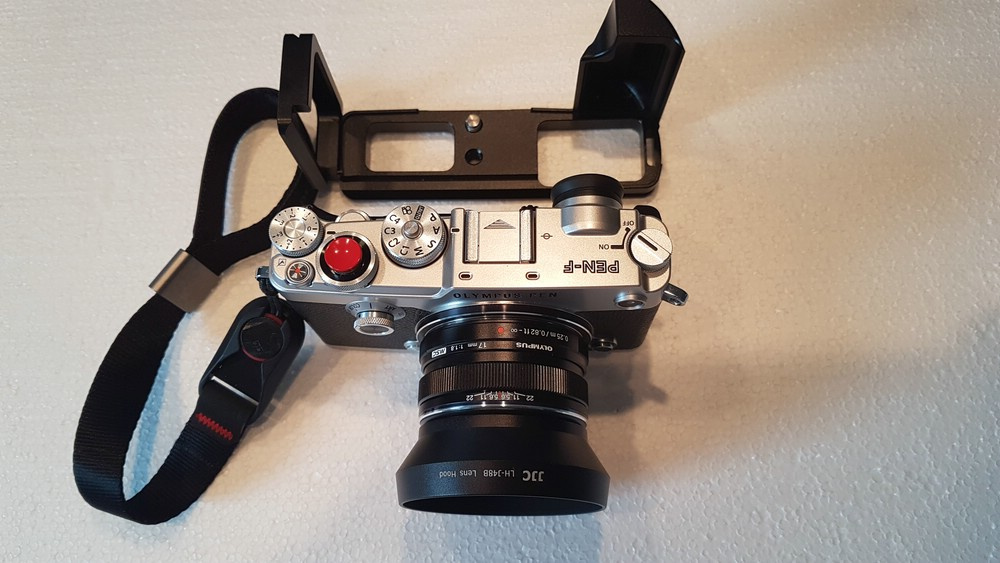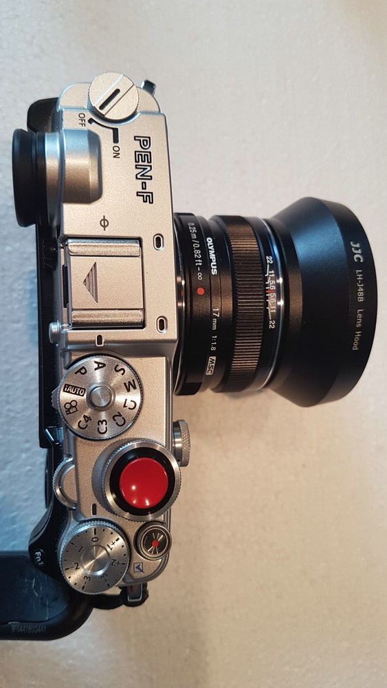 Dabei ist das Olympus Objektiv 17 f 1.8 in schwarz. ( mit Lens Hood LH J 48B – Alu schwarz )