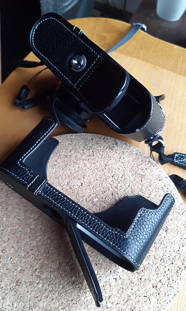 Da doppelt geordert, verkaufe ich dieses wunderschöne neue Multifunktions*-Halfcase / den Protektor für die Leica-M-Familie, aus hervorragend verarbeitendem Leder.