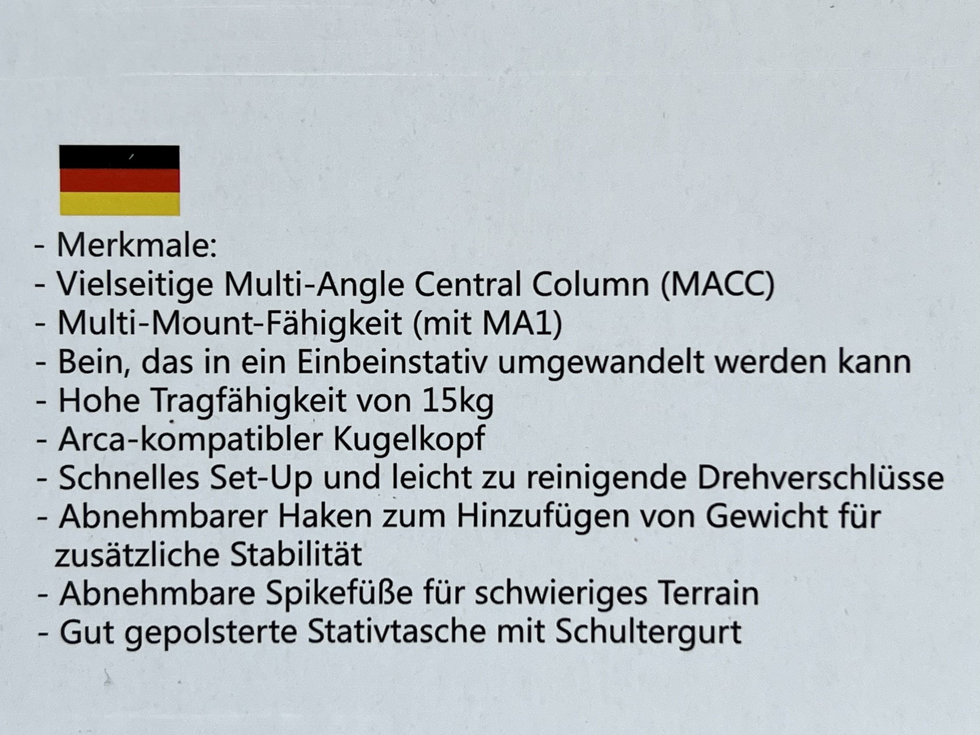 Dieses Stativ ist sehr flexibel und vielseitig. Bis dazu, dass ein Bein abschraubbar ist. Dieses kann mit oder auch ohne Mittelsäule als Einbeinstativ verwendet werden. Wenn ihr euch umfassender informieren wollt, kann ich ein youtube-Video von "Filmmaker Central" empfehlen. Er stellt es komplett mit allen Funktionen vor.