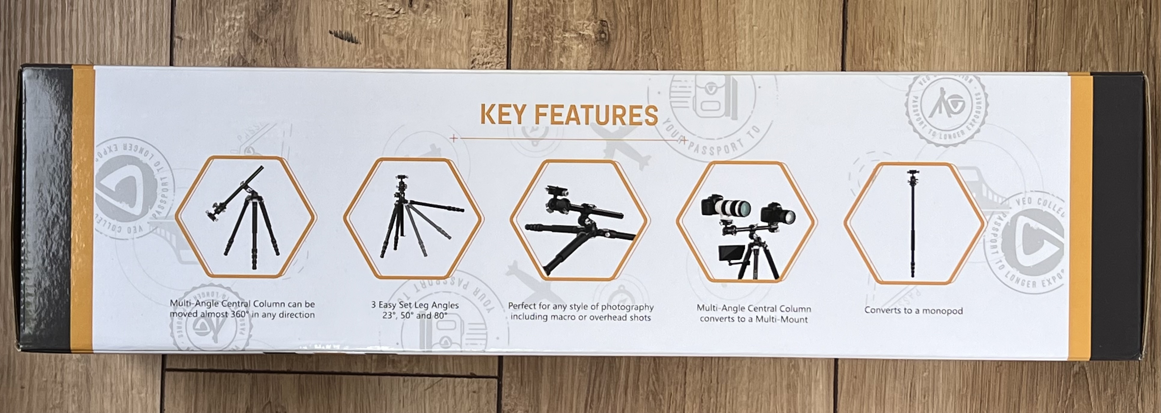 Die Besonderheit dieses Stativs ist die Mittelsäule. Sie lässt sich klassisch in der Höhe verstellen, aber auch quer einspannen. Dies erweitert die Positioniermöglichkeiten. Zusätzlich kann man an der quer eingespannten Säule einen 2. Stativkopf anbringen (im Lieferumfang enthalten). So kann neben der Kamera noch z. B. eine Actioncam oder eine Lampe oder alles mögliche andere aufsetzen.