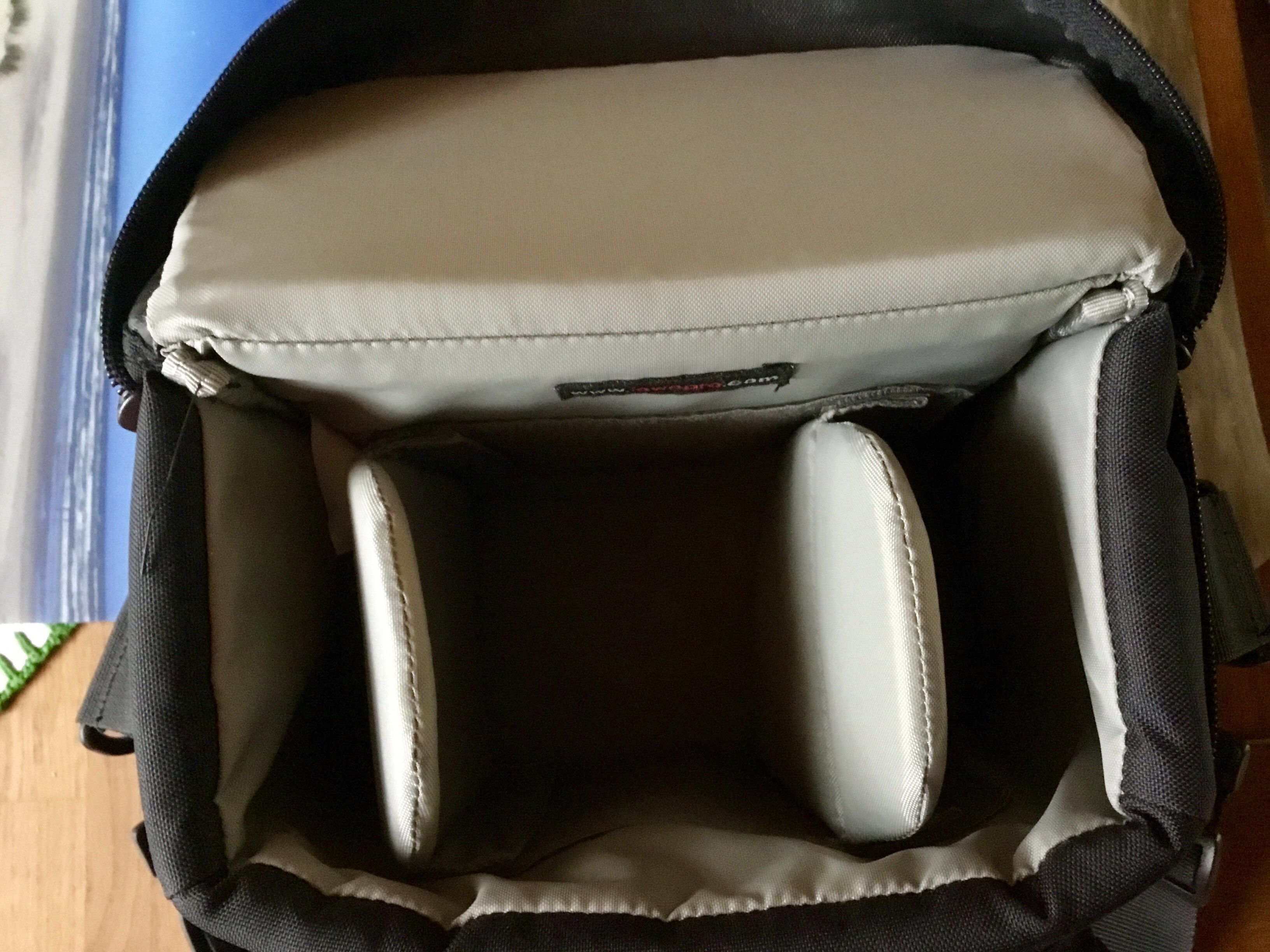 Innen ist die Tasche mit 2 Trennwänden unterteilt.