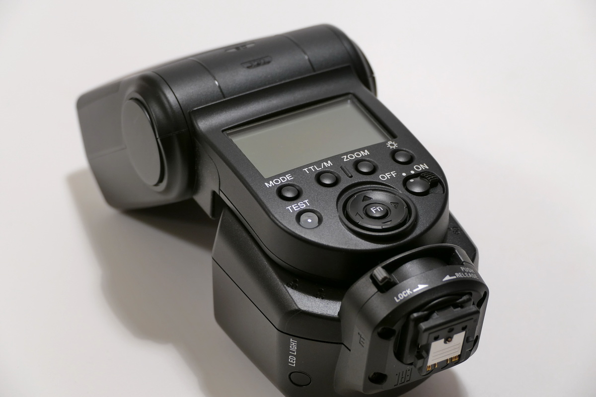 Die kleine Schutzkappe für den Blitzfuß ist natürlich dabei, ich habe sie nur für die Fotos abgenommen, damit man die Kontakte sehen kann.
