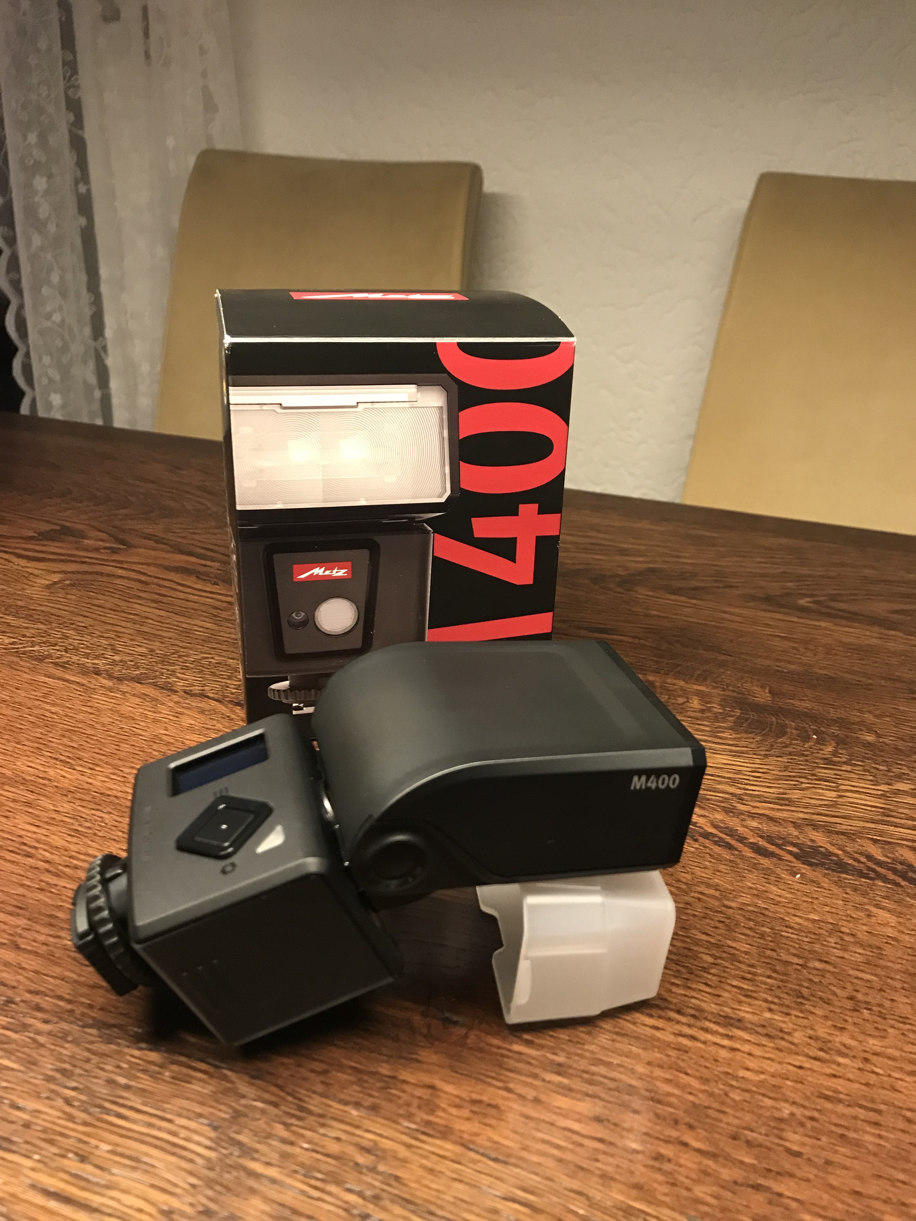 Metz mecablitz M400 für Sony mit Diffusor, Orginalverpackung, allem Zubehör und Rechnung vom 1.2.2018 aus deutschem Fachgeschäft.