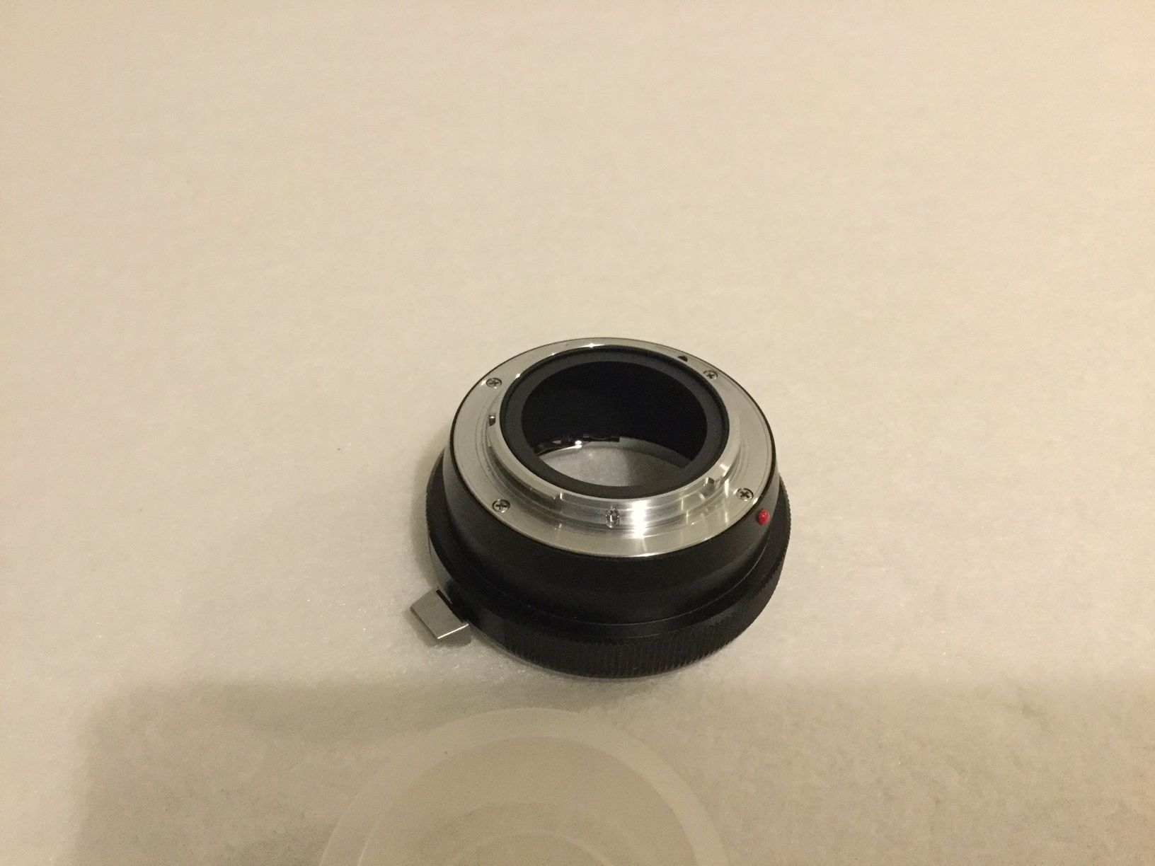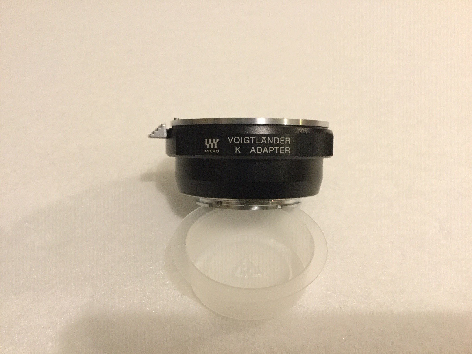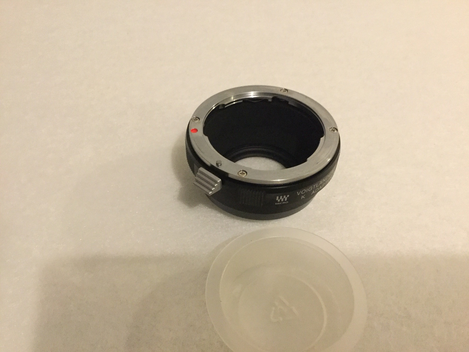 ein wenig benutzter Voigtländer Adapter zum Anschluss von Objektiven mit Pentax/Ricoh K Bajonett an Kameras von Panasonic Lumix bzw. Olympus Micro Four Thirds MFT