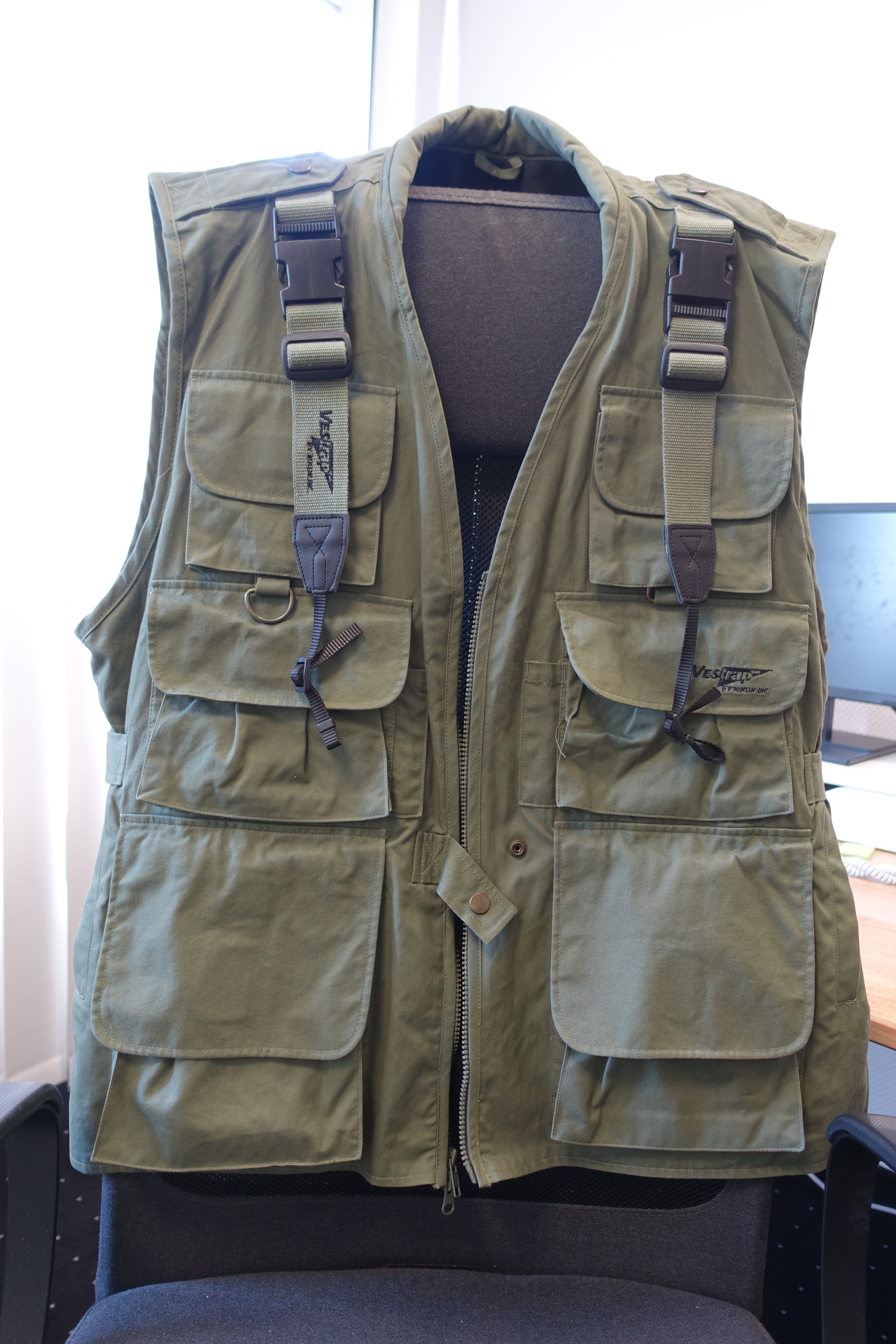 Die Weste ist markenneutral, es steht nicht groß "Nikon" drauf, sondern lediglich "Vestrap" auf der Brust. Kann also auch von Sony Alpha, Canon, Olympus oder Panasonic Fotografen getragen werden 😀