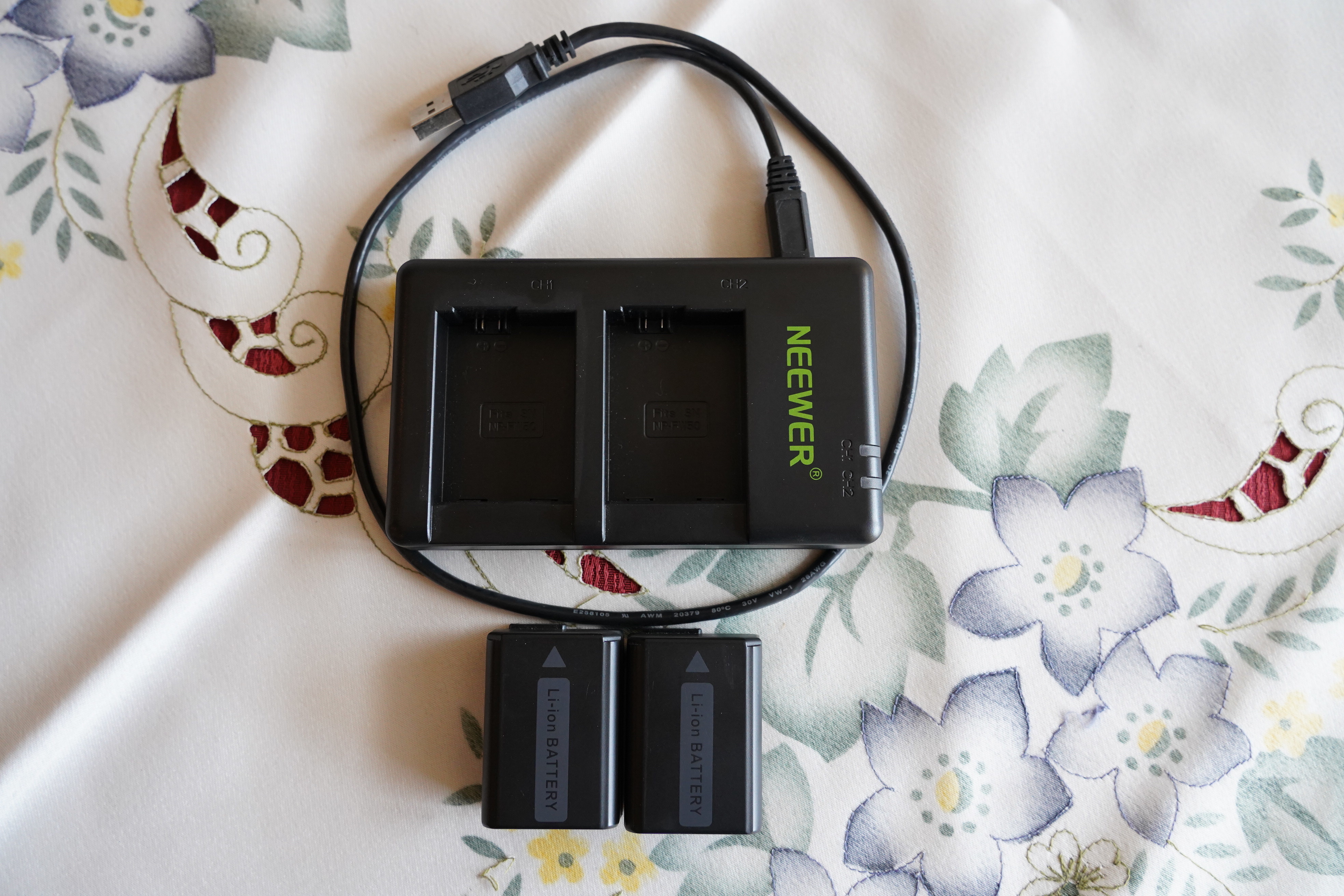 Außerdem ein Neewer Doppelladegerät mit2 Akkus NP-FW50 die beide tadellos funktionieren.