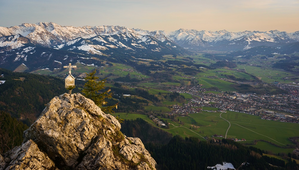 Aussicht vom Burgberger Hörnle (1496 m) in Richtung Illertal und Allgäuer Hochalpen.