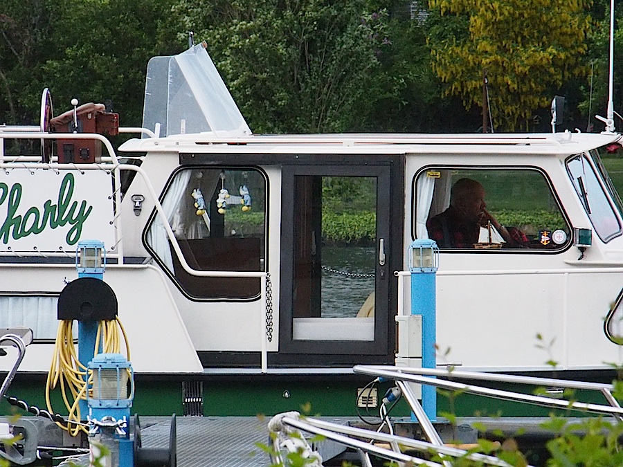Am Abend zwischen 18:30 Uhr und 19:30 Uhr im Biergarten der Fischerstube in Berlin-Grünau am Dahmeufer, Yachthafen