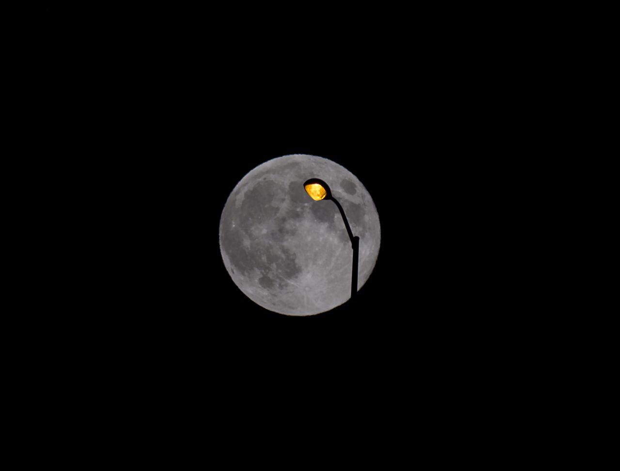 strassenlampe von oakland bay bridge im vordergrund vom diesjährigen september supermond