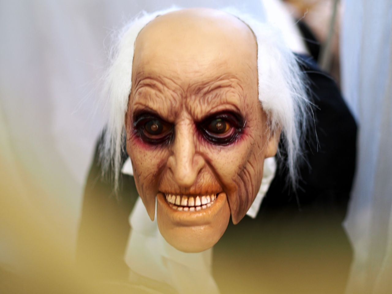 Kopf einer Halloweenfigur im Einkaufscenter.