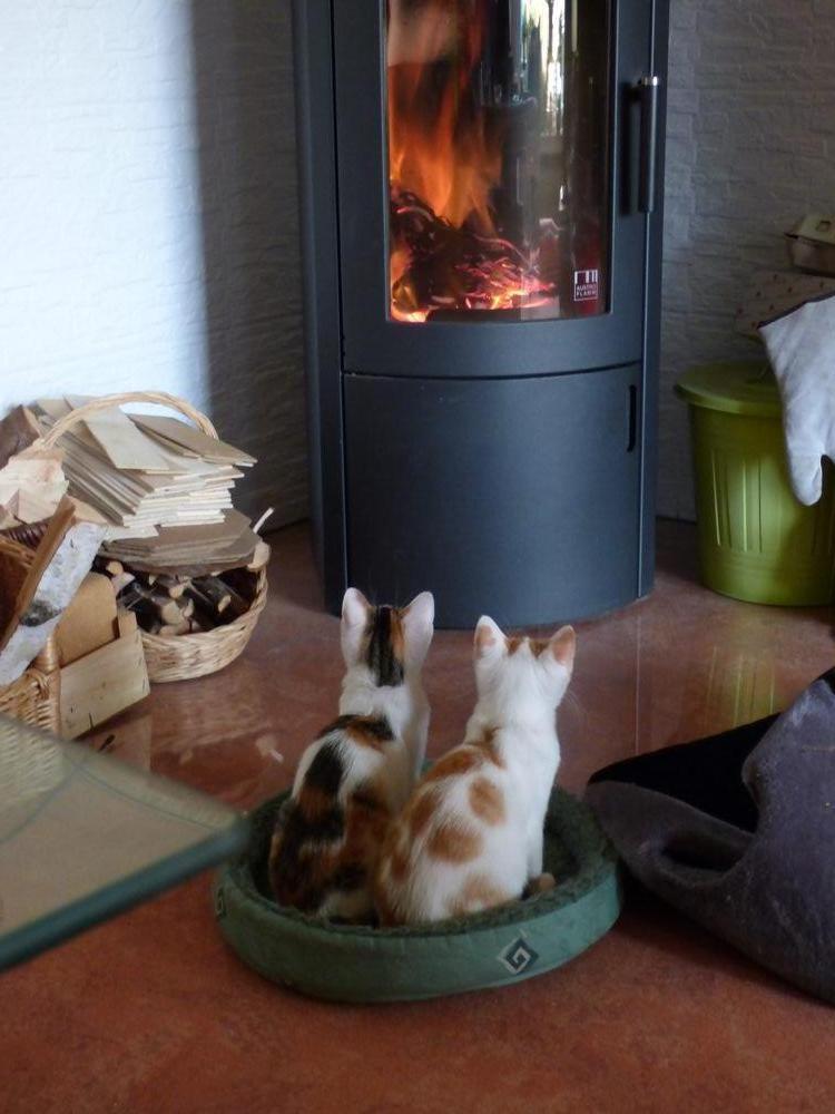 an einem sehr kühlen Sommerabend hat mein mann den Ofen angeworfen: Hermine (links) und Merline (rechts) genießen das sichtlich!