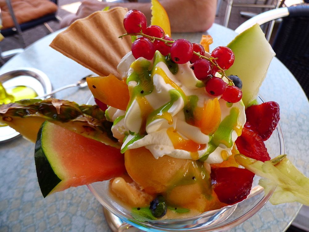 Eisbecker mit frischen Früchten und supergutem Eis in einer Eisdiele in Stutensee