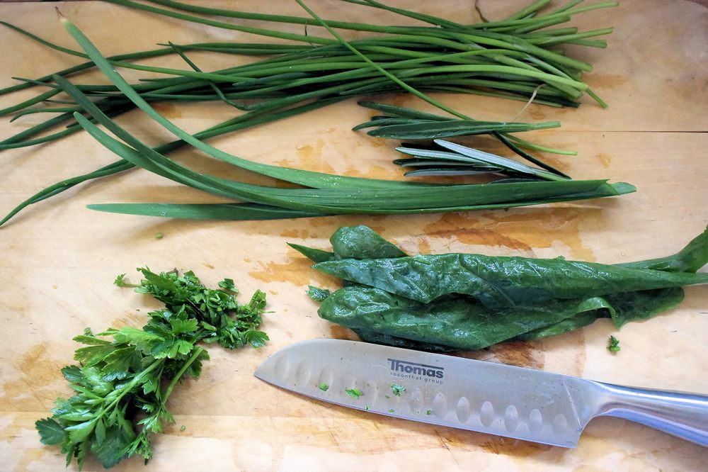Kräuter waschen und hacken