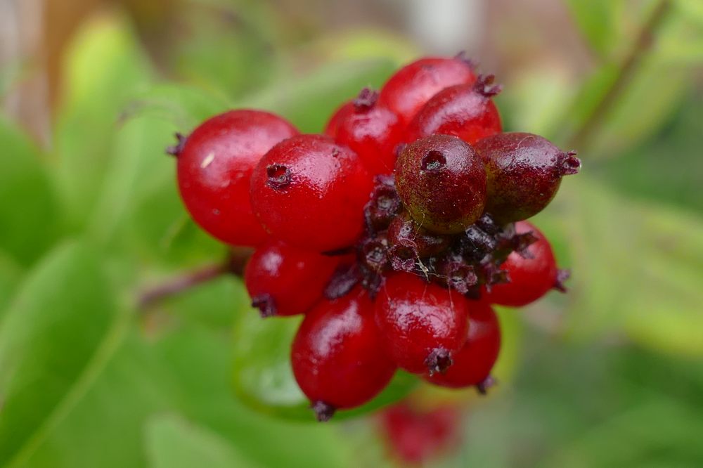 Beere des Geißblatt; sehen so lecker aus - sind aber giftig!