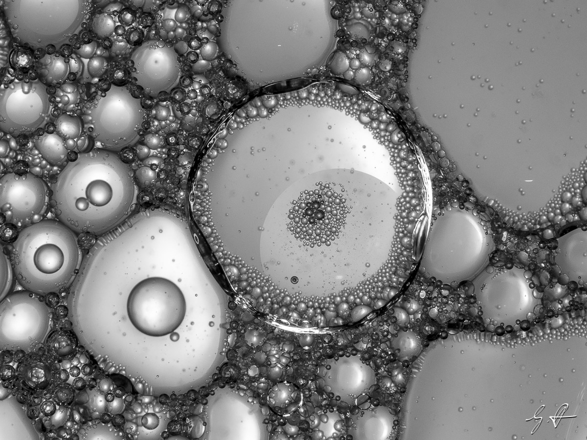 Blasen (Seife, Wasser, Öl) in ca. 2:1 aufgenommen