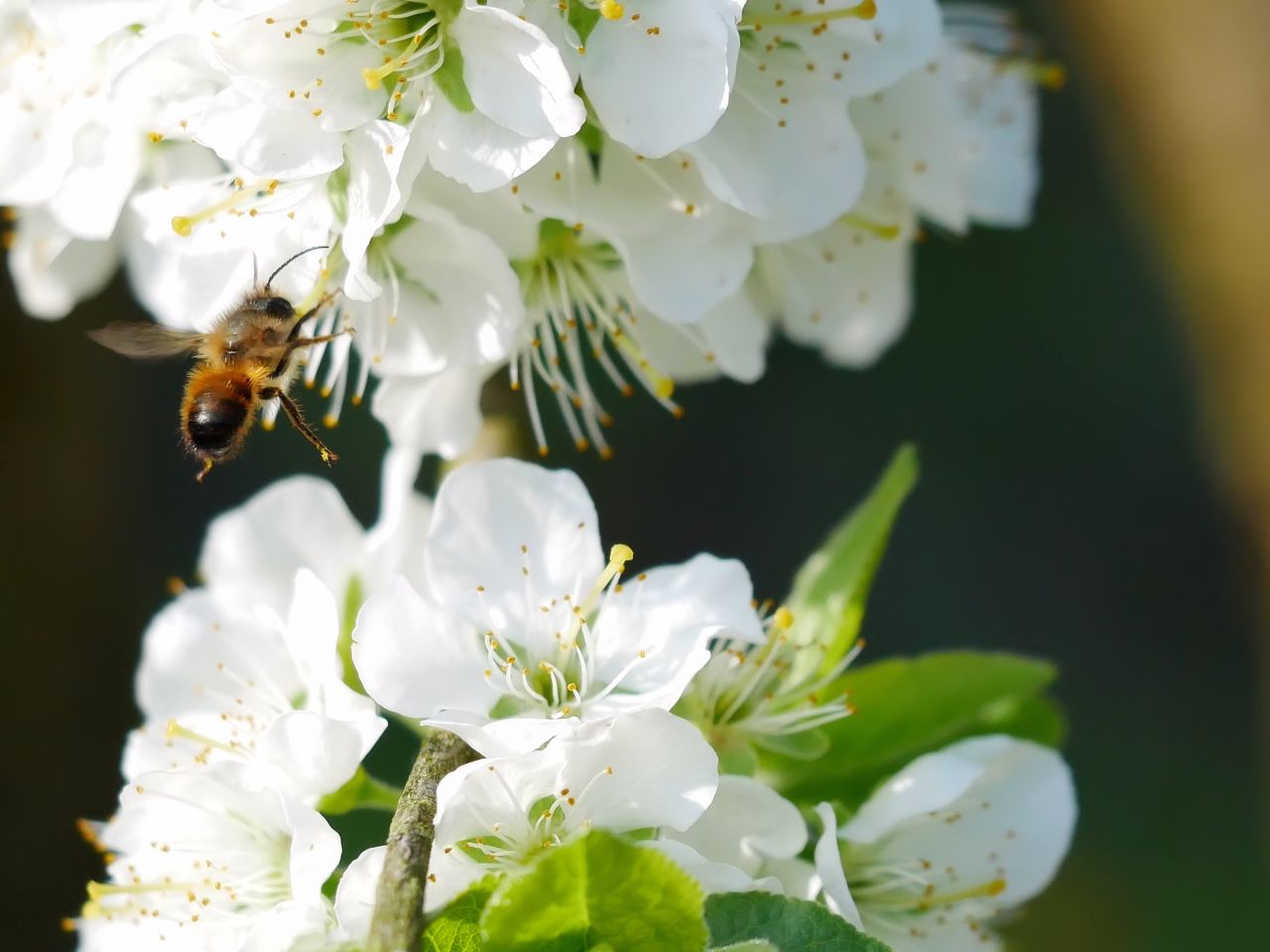 Hier landet die Biene auf der Blüte.