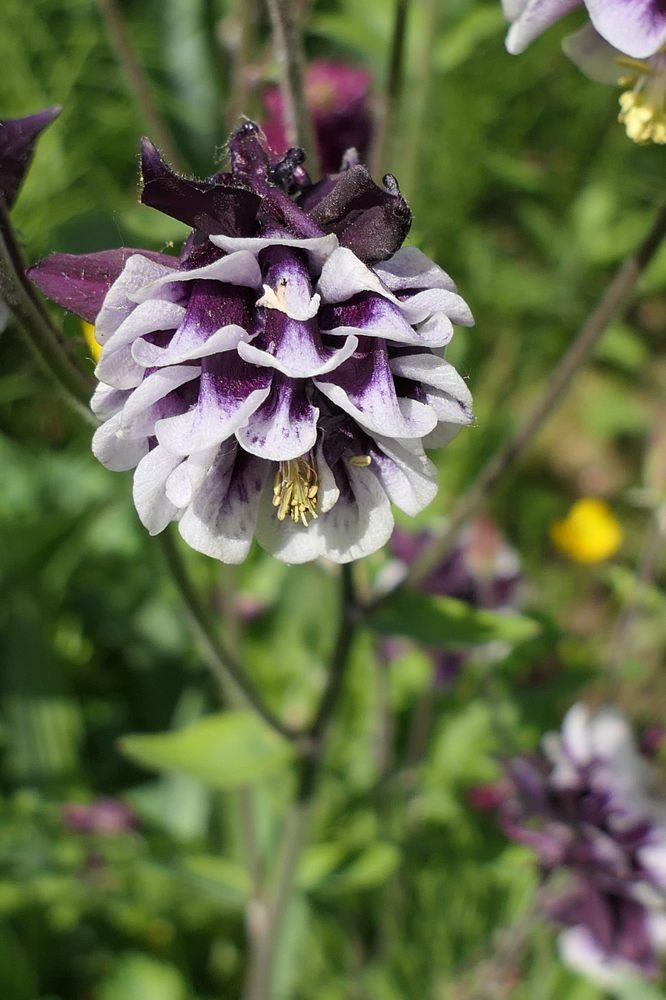 die Vielfalt der Akeleien: weiß mit dunkel-lila