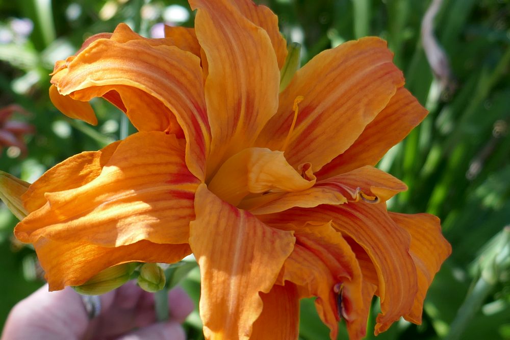 gefüllte Taglilie; orange/rot