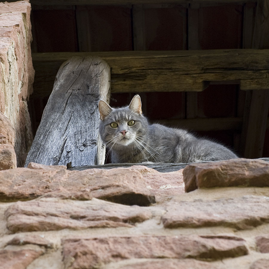 Büdinger Altstadt 13 - neugierige Katze. Interessant war die Farbe.