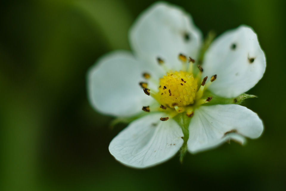 Blüte einer Walderdbeere Bei uns im Garten, mit Stativ und Kabelauslöser, leider etas windig...