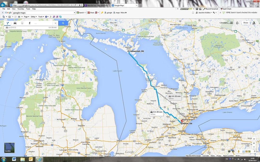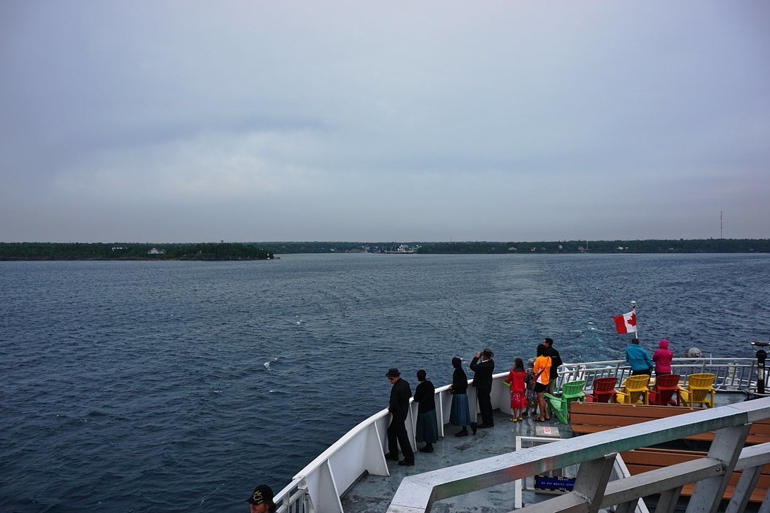 Gestern habe ich meine 11 Tage Motorradtour um die Great Lakes beendet. Ich musste sowieso fuer 2 Tage nach St. Paul, MN fuer eine Pneumatische Foerdertechnik Konferenz, also habe ich das mit dieser Tour verbunden. Hier sind einige Eindruecke und Aufnahmen dieser Tour. Mein Motorrad ist eine 2014 BMW F800 GS Adventure. Die verwendete Kamera ist die A6000 mit Kitobjektiv und SEL 18-200 (altes). Tag 1 ging von Milton, ON nach Manitoulin Island in der Georgian Bay. Dieses erfordert eine 2 stuendige Fahrt mit der Autofaehre Chi Cheemaun (auf Englisch Big Canoe). Manitoulin Island ist haupsaechlich First Nation gebiet. Es ist die groesste Suesswasserinsel der Welt. Dieses is das Big Canoe Alle Fahrzeuge an Bord Einige Menoniten als Passagiere Abfahrt von Tobermory an der Spitze der Bruce Peninsula. Tobermory ist auf der Liste der meisten Taucheraficionados, da viele gesunkene Schiffe besichtig warden koennen Nicht mein Motel, aber gleich gegenueber.
