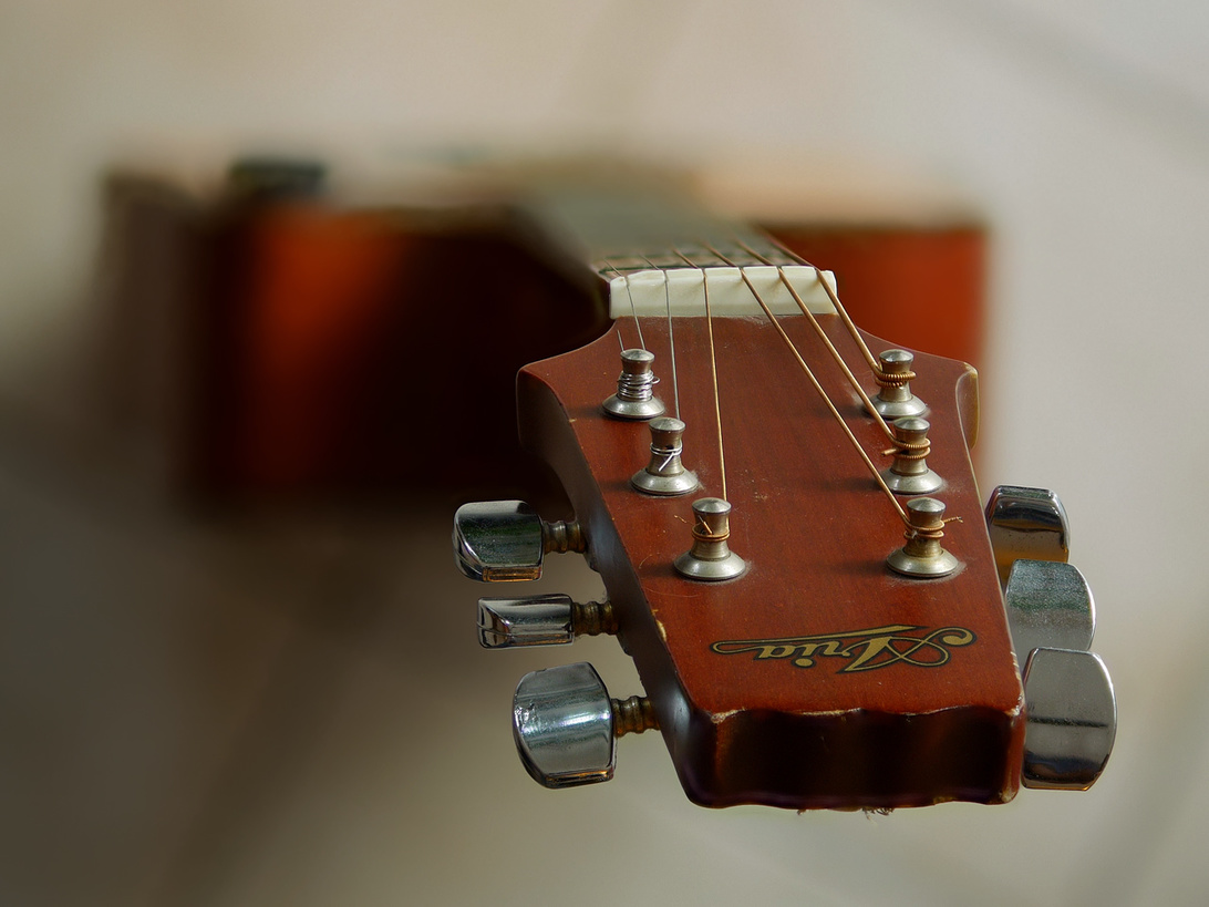 Hier meine alte Aria-Westerngitarre, ich sollte mal wieder drauf spielen ...
