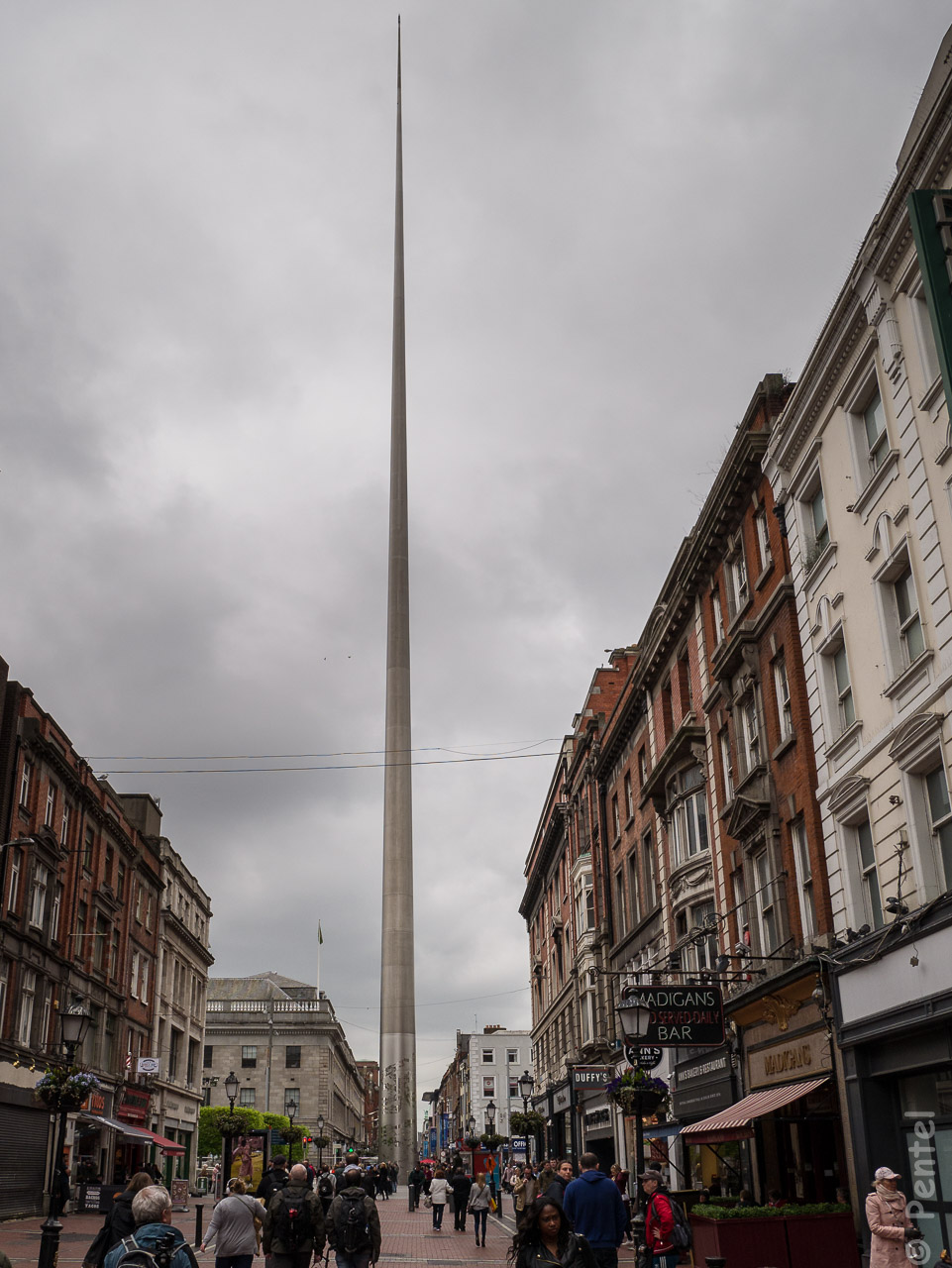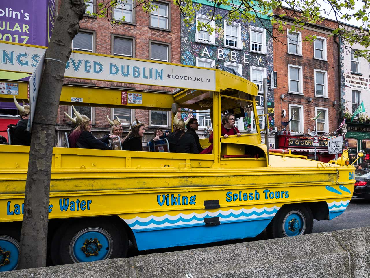 Im Frühjahr habe ich eine 14-tägige Fotoreise durch Irland mitgemacht. Start war am 22.04. und Ende am 07.05.2017. Wenn Interesse besteht werde ich hier über die Tour berichten. Vom Flughafen Dublin ging es mit dem Taxi in die Stadt und dann ab in die City. Das Wetter war wie erwartet, nicht zu kalt, ein kurzer Nieselregen und keine Sonne. Das größte Denkmal Dublins, wahrscheinlich sogar von ganz Irland. Die Spire of Dublin ist eine 120 Meter hohe Nadel, wofür sie steht habe ich leider nicht herausgefunden. Bis 1966 stand an dieser Stelle eine Nelson Säule, die von der IRA gesprengt und 2003 durch die Spire ersetzt wurde. Zu Füßen der Nadel fanden sich ein Musikerduo ein, direkt neben einer gut befahrenen Straße. Nicht der beste Platz für Straßenmusik. Souvenirs finden sich in vielen Läden, fast immer grün und häufig Made in China. Werbung für den eigenen Laden gibt es auch in besonderen Formen. Mit dem Schwimmbus sind wir nicht gefahren, die Truppe an Bord hatte aber sichtlich Spaß.