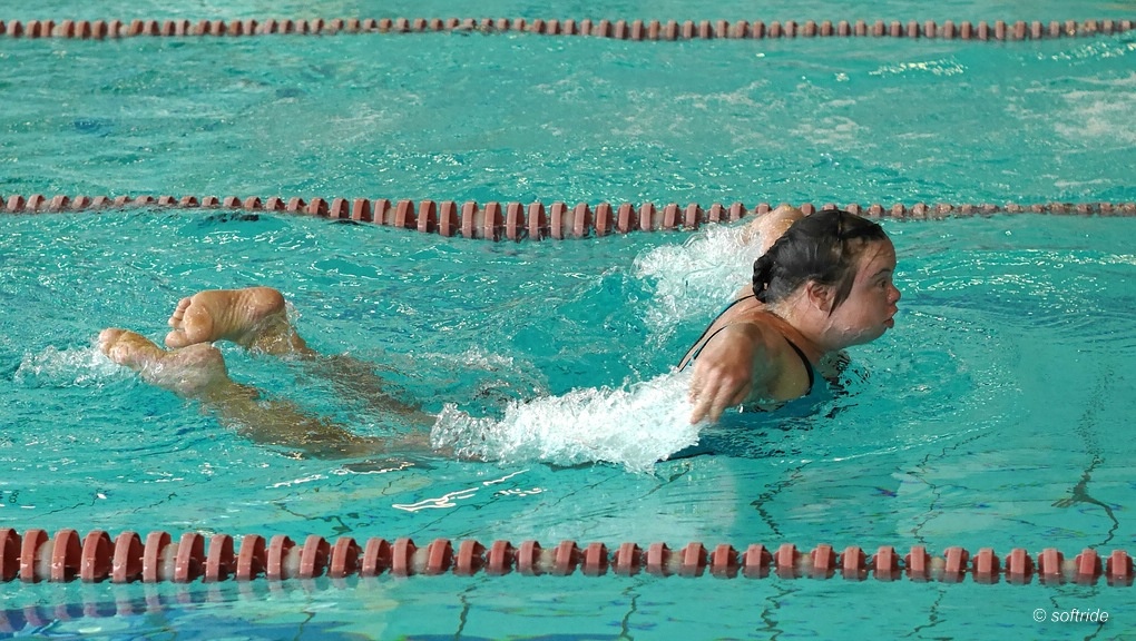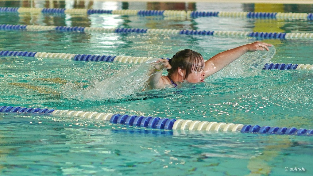 Bei den diesjährigen Qualifikationswettkämpfen für die Special Olympics, den Olympischen Spielen der gesitig behinderten Menschen, konnte ich in der Schwimmhalle fotografieren. Daneben gab es natürlich noch viele andere Sportarten zu sehen. Aber als Betreuer musste ich ortsfest sein und mich so mit dem miserablen Licht in der Schwimmhalle begnügen. Die Aufnahmen entstanden durchwegs mit der Lumix GX7 und mit dem Olympus 1:1,8/45 mm mit Blendenautomatik (S-Mode) und recht hohen ISO-Werten in JPEG. Wegen der großen Anzahl an Aufnahmen und der knappen Zeit für Presseberichte habe ich auf Raw verzichtet. Ich beginne mal mit Schmetterling
