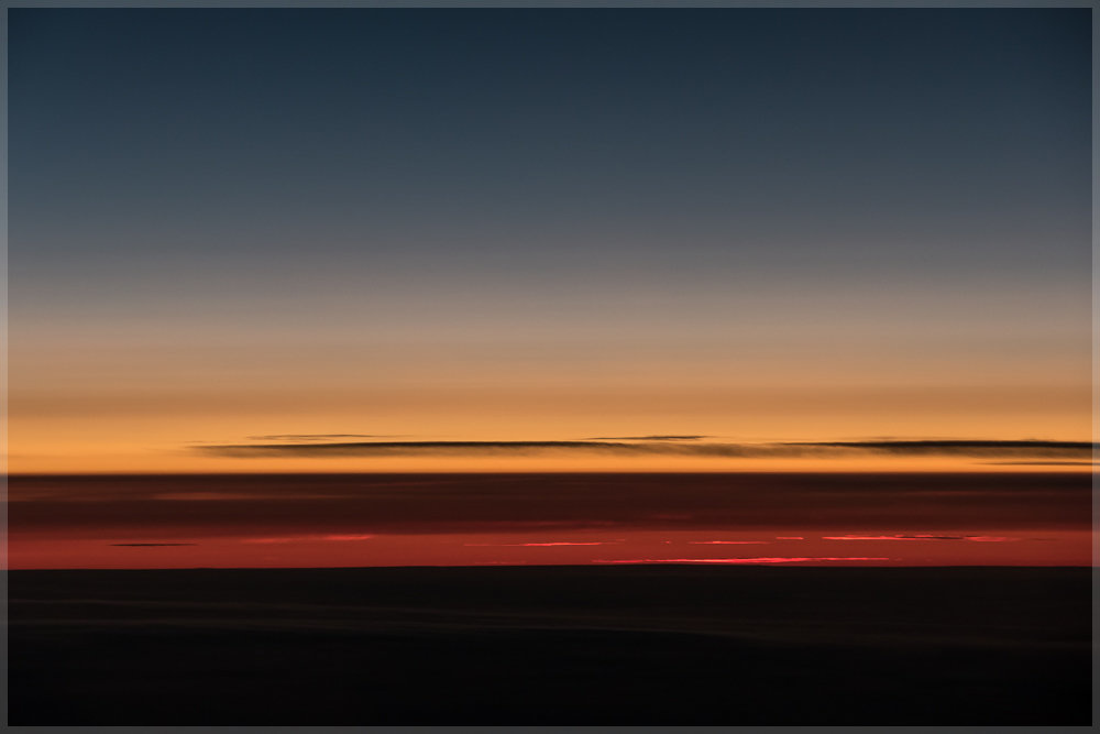 Moin, auf dem Rückflug vom Kanada im letzten Jahr zeigte sich am frühen Morgen über dem Atlantik ein farbenfroher abstralter Sonnenaufgang.