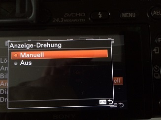 habe mir gerade eine Sony Alpha 6000 zugelegt und möchte unter Menüpunkt 5/1 (Wiedergabe/Anzeige-Drehung)