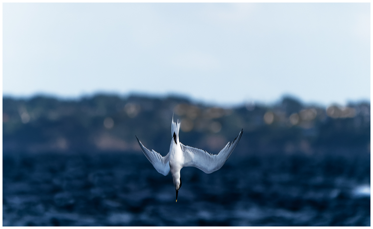 Die Bretonen nennen diese Möwenart "goélands à tête noire". Keine Ahnung, wie die "Schwarzkopfmöwen" auf Deutsch heißen. Jedenfalls sind sie kleiner als die anderen, streitlustig, extrem laut und Lufthektiker. Wenn sie was zu futtern sehen, geht's mit Vollgas senkrecht runter und ungebremst ins Wasser.
