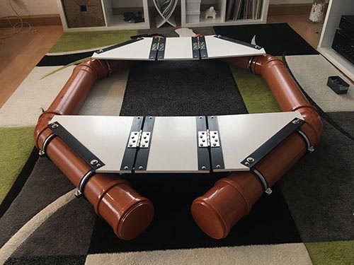 Hallo liebe Leute! Ich weiß einige von euch warten schon darauf, dass ich das hier endlich mal zeige, daher möchte ich euch hier nun endlich mein Winterprojekt 2017/2018 vorstellen, welches leider erst vor zwei Monaten so richtig fertig geworden ist. Ich habe mich die letzten zwei Jahre immer mehr in Richtung Tierfotografie eingefahren und meinen Fokus verstärkt auf die Ansitzfotografie gelegt. Angefangen hat das alles noch mit einem Tarnschal und einem Tarnnetz. Mittlerweile bin ich bei diversen Tarnnetzen, Tarnzelten und Ponchos angelangt und stimme die Tarnung je nach Anforderung an die Tierart und das Habitat ab. Nachdem ich im Buch "Wildlife Fotografie" von Christoph F. Robiller über das sogenannte Schwimmversteck gelesen habe, ließ mich der Gedanke darüber nicht mehr los. Ich wollte selber ein schwimmendes Tarnzelt für die Fotografie von Wasservögeln haben. Das im Buch gezeigte Schwimmversteck ist etwas spartanisch und muss vor Ort zusammengeschraubt werden. Das gefiel mir in der Form nicht so wirklich, deshalb habe ich mich online nach weiteren Varianten umgesehen. Solche Schwimmverstecke gibt es außerdem in unterschiedlichen Ausführungen zu kaufen. Das tollste darunter ist wahrscheinlich das ziemlich teure Floating Hide (www.floating-hide.com) mit ca. 1000,- €. Alternativ gibt es das aufblasbare Mr.JanGear Floating Hide (www.mrjangear.com) für ca. 800,- €. Für das was es im Endeffekt ist - nähmlich ein einfaches Floß - waren mir diese Fertigvarianten aber zu teuer. Ich wusste nun aber zumindest mal, was ich nicht wollte und welche Anforderungen ich in etwa an das Versteck habe. Das Teil sollte nicht zu spartanisch sein, sollte sich schnell aufbauen lassen (kein Geschraube oder aufpumpen) und sollte sich an einem Stück in meinem Auto (1er BMW) transportieren lassen. Gleichzeitig sollte es aber halbwegs geräumig sein, um auch bei längerem Aufenthalt darin, etwas Bewegungsraum zum strecken usw. zu bieten. Mit diesen Infos ging es nun an die Planung. Ich beschloss das Versteck komplett aus witterungsfesten Materialien zu bauen. Kostenseitig sollte das ganze unter 300,- € bleiben (blieb es nicht). Ich selber hatte ehrlich gesagt an dem Punkt noch nicht den geringsten Schimmer, wie ich das Projekt angehen sollte. Ich bin zwar handwerklich halbwegs geschickt, aber die Arbeit mit Kunststoff war für mich absolutes Neuland. Ich zog deshalb bei der Planung zudem noch einige Handwerker, Bootsbauer und Segler hinzu - zum Glück alles Freunde, die einem bei so bekloppten Vorhaben gerne zur Seite stehen. Nach einigen Gesprächen stand irgendwann der Grundriss und ein grober Plan fest. Als Schwimmkörper sollten KG-Rohre dienen, wie auch im oben gezeigten Buch. Allerdings sollte die Grundform rund werden und die Plattform sollte sich in der Mitte über Scharniere umklappen lassen, ähnlich wie ein Klapptisch. Für den Aufbau, der die KG-Rohre zusammen hält und als Arbeitsplattform dient, habe ich mich für 10mm PVC-Hartschaumplatten entschieden. Diese sind sehr leicht und absolut wasserresistent. Für die Zuschnitte reichte mir eine 700x1000mm Platte aus. Zusätzlich habe ich die Hartschaumplatten an den Kanten mit Kunsstoffwinkeln verstärkt. Bei den KG-Rohren handelt es sich um handelsübliche DN-125 Rohre. Insgesamt sind es 6 Rohre mit 500 mm Länge, welche mit 45°-Bögen zu zwei Schwimmkörpern verbunden werden. An jeweils einem Ende braucht es an jedem Schwimmkörper noch eine Überschiebmuffe. Die Öffnungen werden anschließend vorne wie hinten mit entsprechenden Muffenstopfen geschlossen. Die Kunsstoffwinkel wurden mit Edelstahlschrauben an den Platten fixiert. Anschließend habe ich die Hartschaumplatten mit 100mm Edelstahlscharnieren verbunden. Im nächsten Schritt wurden die Platten mittels Rohrschellen an den Schwimmkörpern festgemacht und ich konnte zum ersten mal testen, ob die Klappfunktion wie gewünscht gegeben ist. Als nächstes musste ich dafür sorgen, dass die Platten nicht bei Belastung einsacken und sich die Arbeitsplattform sperren lässt. Dies wurde mit vier Spannverschlüssen an der Unterseite der Platten erreicht. Anschließend wurde eine verstärkende Platte an der vorderen Arbeitsplattform angebracht. In dieser habe ich mit Hilfe einer 1/4“ Befestigungsschraube mit D-Ring ein 1/4“ auf 3/8“ Adapter von Manfrotto eingeschraubt, auf welcher sich ein Kugelkopf anbringen lässt.- 70 Antworten