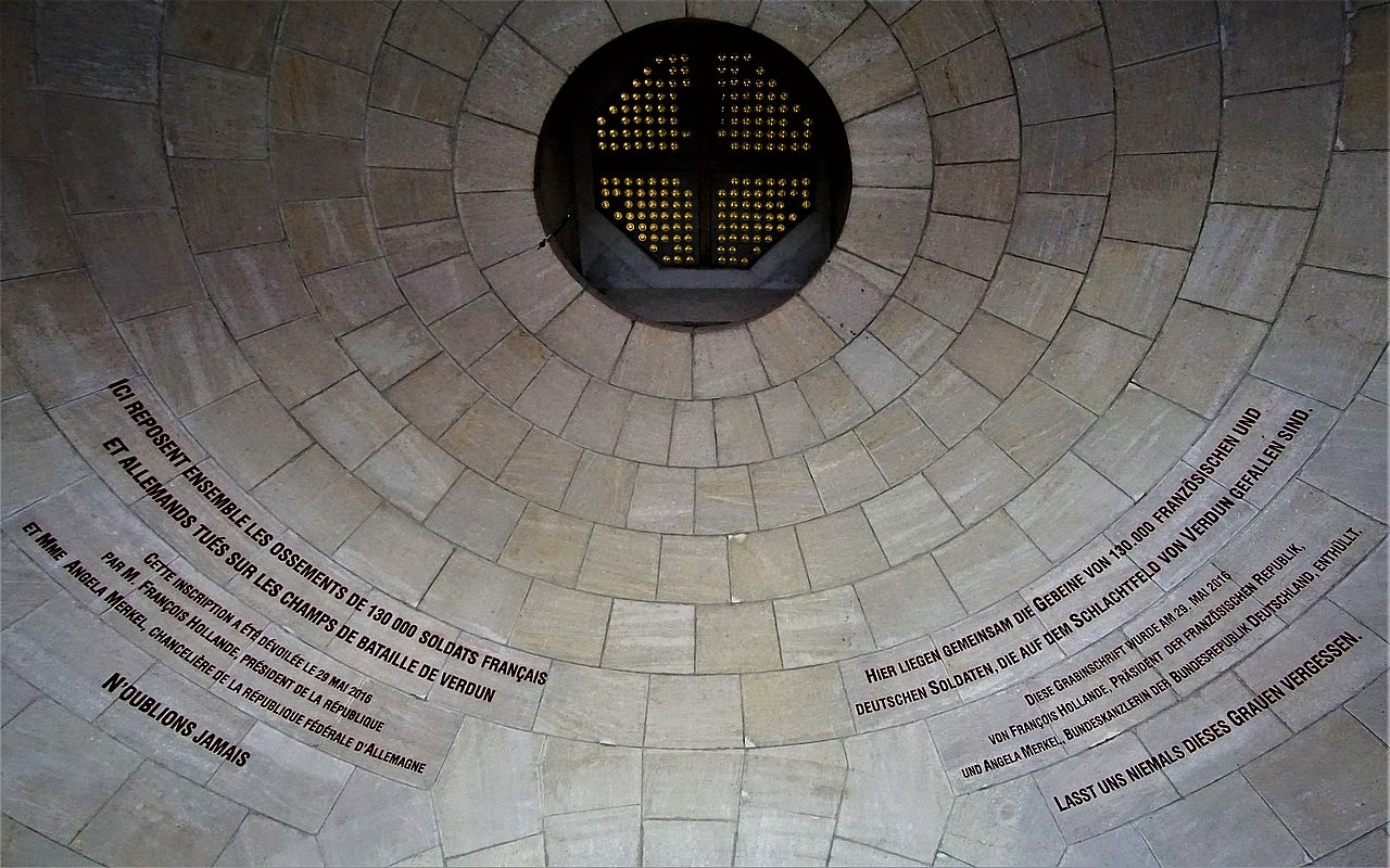 Der Mond hat viele Krater, aber die Gegend um Verdun hatte sicher mehr Krater, die im Bereich der Landwirtschaft schon längst wieder beseitigt sind! Die dichten Wälder zeigen ein frisches Grün und die unzähligen Krater sind wieder nach 100 Jahren mit Bäumen bewachsen! Die Sonne scheint und es ist friedlich und kaum noch etwas erinnert an das unendliche Grauen dieser Schlacht um Verdun! Die Besucher besichtigen beindruckt die unzähligen Erinnerungsstätten des Grauens und kein Hinweis ist zu sehen - NIE WIEDER KRIEG! Die Menschheit hat leider überhaupt nichts daraus gelernt! Die gefallenen Sieger haben weiße Kreuze und die Verlierer tragen Schwarz! Was für ein Wahnsinn!