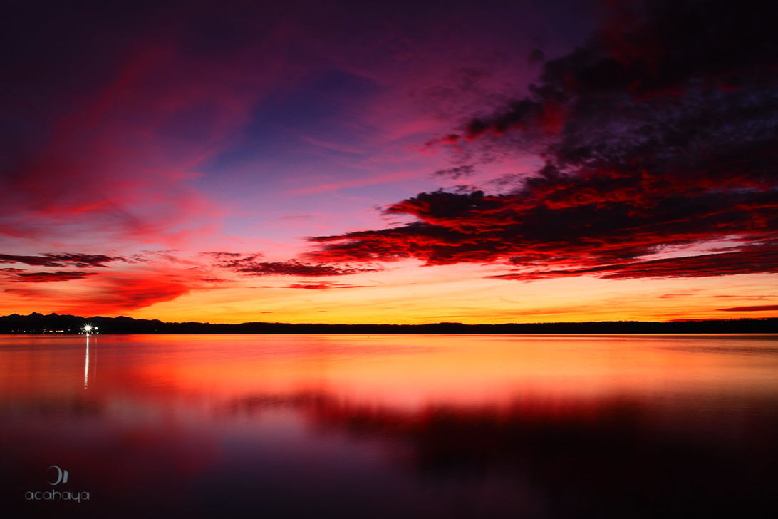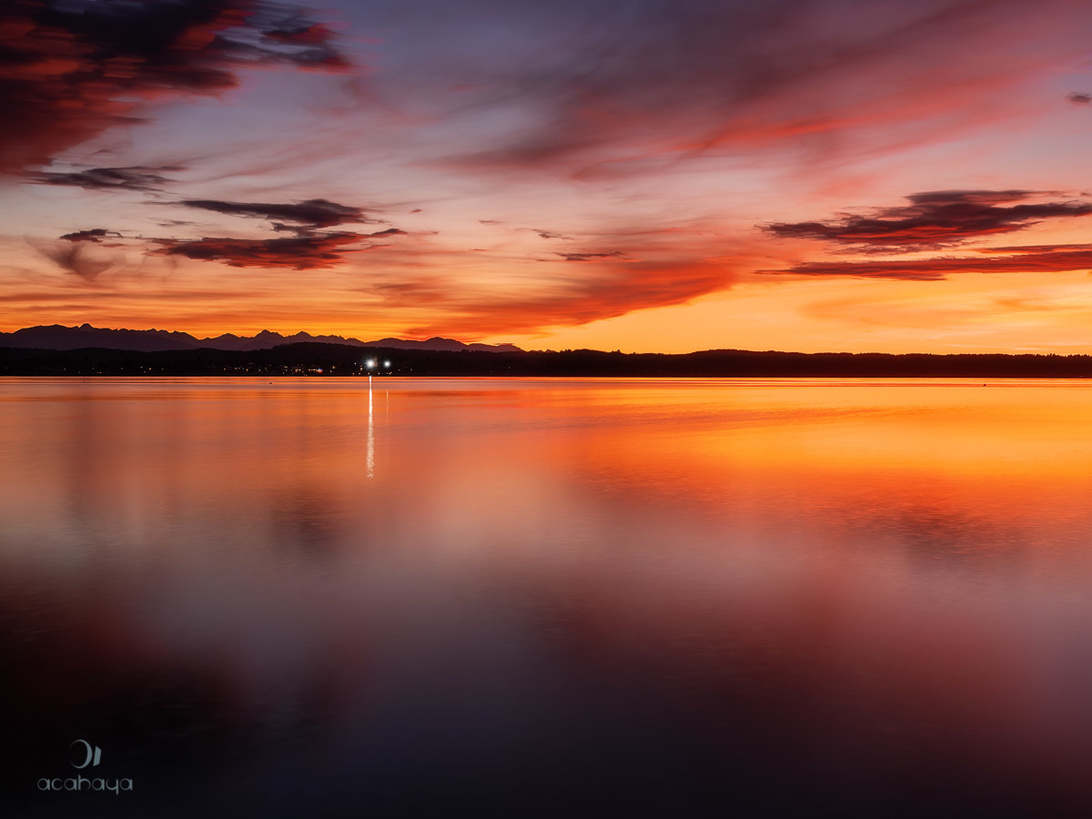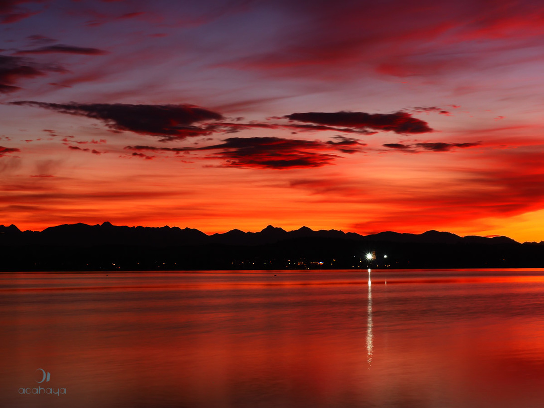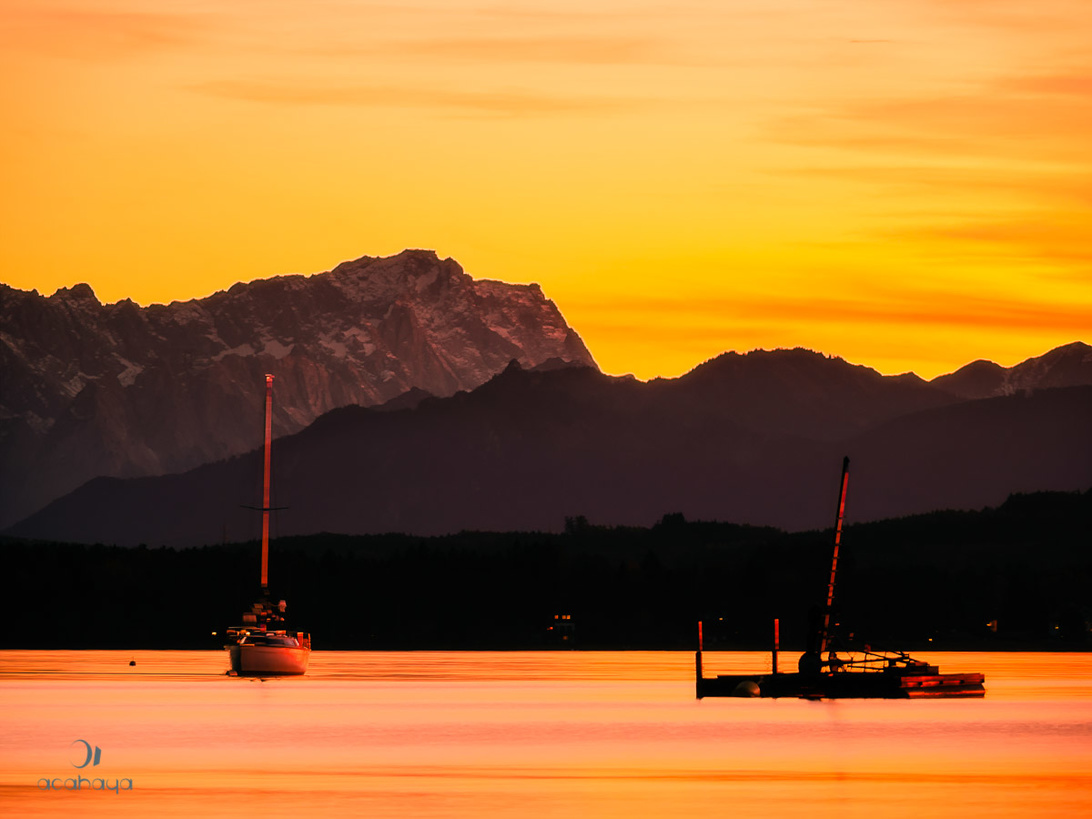 Wir hatten gestern eigentlich eine Vier-Seen Foto- und Wanderteur Tour geplant, von Mittenwald über den Lautersee zum Ferchensee und zurück, dann zum Rießersee oberhalb von Garmisch um die Sonne wenn sie hinter dem Waxenstein vorkommt zu fotografieren und zum Schluß zum Starnberger See um Sonnenuntergang und Blaue Stunde am Ufer links vom Buchscharner Seewirt zu fotografieren. Leider haben uns der Topfenstrudel in der Lautersee-Alm und ein Mega Stau in Garmisch zeitlich weit zurückgeworfen, so dass wir erst 25 Minuten nach Sonnenuntergang mit aufgebauten Stativen am Ufer des Starnberger See standen. Die Wolken versprachen zumindest von der Autobahn aus noch schöne Bilder und das hat nicht getäuscht. Da ich den falschen Step-Down-Ring für meinen ND Filter dabei hatte, musste ich das Wasser anfangs noch mit Live Composite glätten, später war es dann dunkel genug um auch so lange genug belichten zu können. Und da ich mich nicht so recht entscheiden kann, wwas mir jetzt am besten gefällt, müsst Ihr Euch jetzt 8 Bilder ansehen 4 gecroppte OOC JPGs, das Wasser ist mit Live Composite und einer belichtungszeit von 1-2 Sekunden geglättet Beim Zugspitzblick habe ich das RAW entwickelt um die Berge etwas deutlicher hervor zu heben Hier wollte ich sehen, um wieviel besser ich im Vergleich zur JPG Engine meiner Kamera bin und hier sind nochmal 2 JPGs aus der Kamera, diesmal ausreichend lange belichtet, um schön verwischtes Wasser zu bekommen.