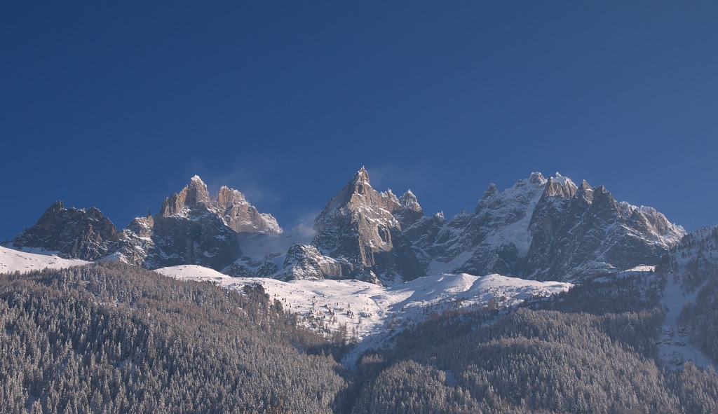 Schöne Aussicht von Chamonix auf diese Gebrigskette ...leider fast mit Gegenlicht und dem falschen Objektiv