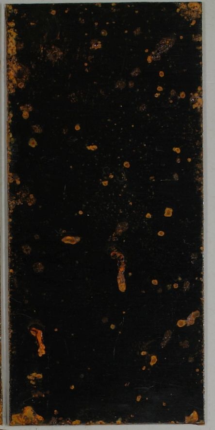Das Beispielbild zeigt eine real hochglänzende metallische Oberfläche mit einigen Rostflecken. Während die Rostflecken sehr gut wiedergegeben werden, erscheinen alle hochglänzenden Anteile schwarz.