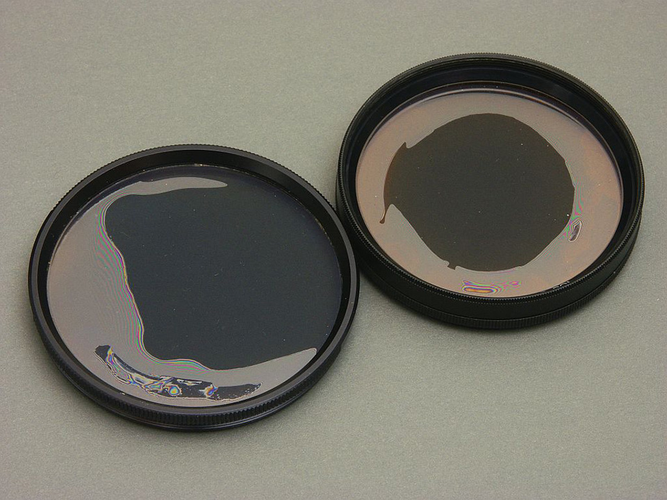 Effekt Licht ist eine sich ausbreitende elektromagnetische Schwingung, die sich als Welle geradlinig fortpflanzt. Dabei schwingt der elektrische Anteil senkrecht zur Ausbreitungsrichtung und im Allgemeinen in beliebigen vielen Ebenen. Wenn dieser Anteil in nur einer einzigen Ebene schwingt, so ist das Licht polarisiert. Wird das polarisierte Licht durch ein gitterartiges (Pol-)Filter in seiner Schwingungsebene behindert, so wird das durchtretende Licht abgeschwächt. Stehen Gitter und Schwingungsebene senkrecht zueinander, dann wird der polarisierte Anteil des Lichts bei sehr guten Filtern gesperrt. Licht wird durch verschiedene Effekte polarisiert. Fotografisch wirksam sind davon nur - Polarisation durch Streuung (Himmelsblau) - Polarisation durch Reflexion (Spiegelungen) Polarisation durch Streuung Ein Teil des zunächst nicht polarisierten Sonnenlichts wird durch Streuung an den Luftmolekülen genau senkrecht zur Richtung der Sonnenstrahlen polarisiert. Dieser Effekt ist am stärksten bei sehr klarer Luft. Dann erscheint der Himmel durch ein Polfilter bei geeigneter Drehung tief-dunkelblau, während die Wolken ihre Farbe behalten. Bei diesigem Wetter, bei bedecktem Himmel und Nebel, im Rücken- und Gegenlicht ist dieser Effekt sehr gering bis Null. Dann bringt ein Polfilter nichts. Außerhalb von 90° zur Sonne nimmt der Effekt sehr schnell ab. Mit Polfilter und Weitwinkelobjektiv fotografiert wird dann der Himmel ungleichmäßig hell bis fleckig. Deshalb bei Panoramen kein Polfilter! Polarisation durch Reflexion Nach Reflexion an elektrisch schlecht leitenden Materialien ist Licht unter einem vom Material abhängigen Winkel polarisiert (Wasser, Glas, Kunststoffe, Lacke, Holz, Haut, Blätter, Gräser). Dieser Winkel beträgt gegen Reflexionsfläche gemessen: - Diamant 22.47° - Schwerflint 29.8° - Flintglas 31.8° - Polystyrol 32.2° - Kronglas 33.51° - Plexiglas 33.8° - Quarzglas 34.4° - Wasser tan a = 1/1.33299 à Polarisationswinkel = 36.88° Fotografiert man mit einem Polfilter unter diesem Winkel, so wird die Reflexion gemindert bis ausgeschaltet, und es treten die Grundfarben ohne Spiegelungen klar hervor. Das wird auch in der Landschaftsfotografie wirksam, wenn die vielen Spiegelungen an Blättern und Gräsern bei klarem Sonnenschein spiegeln. Bei geeigneter Drehung des Polfilters wird dann die Landschaft klarer, brillanter, farbiger. Außerhalb dieses Winkels gibt es keinen Poleffekt. Dann bringt ein Polfilter nichts. Deshalb kann man eine Wasserfläche oder Fensterscheibe mit einem Weitwinkelobjektiv nicht vollständig entspiegeln. Denn nur für eine kleine Fläche stimmt der Polarisationswinkel. Auch an gewölbten Flächen hat man keine Chance. Bei elektrisch gut leitenden Materialien (Metalle) gibt es keinen Poleffekt. Der elektrische Anteil des Lichts wird quasi kurzgeschlossen. Will man dennoch Spiegelungen an Metallen dämpfen, so kann man die Kreuzpolarisation anwenden. Dabei wird eine lineare Polfolie vor die Lichtquelle gespannt. Das Licht ist also bereits vor der Reflexion polarisiert und dann hinterher auch. Mit dem Polfilter vor dem Objektiv kann man dann die Spiegelungen bei geeigneter Drehung des Filters unterdrücken. Polfilter Lineare Polarisationsfilter bestehen aus einer Polfolie aus hochpolymerem, lichtdurchlässigem Kolloidfilm aus Polyvinylalkohol (PVAL) und zwei Deckgläsern. Die Stabmoleküle dieses Films werden durch einen Streckprozess so ausgerichtet, dass sie sich wie ein einachsiger Kristall verhalten. Diese Polfolie wird zum Schutz noch mit Celluloseacetobutyrat (CAB) überzogen. Bei Zirkular-Polfiltern sorgt eine zusätzliche, um 45° verdrehte Lambda/4-Verzögerungsfolie dafür, dass das durchgelassene Licht zirkular polarisiert ist. Das ist für Kameras wichtig, die intern Elemente besitzen, die polarisierende bzw. analysierende Wirkung haben (Hilfsspiegel, Prismen) und die durch ein nur lineares Polfilter im Autofokus und/oder der Belichtungsmessung irritiert werden und zu Fehlmessungen führen. Nur Zirkularpolfilter vermeiden das. Polfilter schlucken unabhängig von ihrer Drehstellung rund 1.5 bis 2 Blenden/Zeitstufen. Polfilter nach Erwin Käsemann sind besonders gut randversiegelt gegen Eindringen von Feuchtigkeit. Da die Folien etwas hygroskopisch sind, können sie bei Feuchtigkeit vom Rand her erblinden. Hersteller - B&W (Schneider-Kreuznach) - Hoya - Heliopan - Leica Vergütung Die Vergütung von Polfiltern spielt nur eine sehr untergeordnete Rolle, da man ja im Gegenlicht, wo eventuell Lens Flares auftreten könnten, keinen Poleffekt durch Streuung hat. Die Vergütung von Käsemann-Filtern war bis vor kurzem technisch nicht möglich. Mit unvergüteten Polfiltern (Leica, Minolta) erhält man ebenso einwandfreie Fotos wie mit vergüteten! Qualitätsunterschiede -Güte der Polfolien (Transparenz, Farbneutralität, Sperrwirkung) - Güte der Deckgläser (Transparenz, Farbneutralität, Planparallelität) - Randversiegelung (gegen frühzeitiges Erblinden vom Rand her) - Güte der Oberflächenvergütung (Reflexionsminderung, Wasser-/Schmutzresistenz) - Qualität der Fassung (Verwindungssteifigkeit, Neigung zum Festfressen, Drehbarkeit) Bildbeispiele 1) Zirkular-Polfilter (Minolta, unvergütet) 2) Polfilter erblindet 3) Hose ohne – mit Polfilter Weitere Bildbeispiel im nächsten Beitrag, da hier nur maximal 5 Bilder hochgeladen werden dürfen...