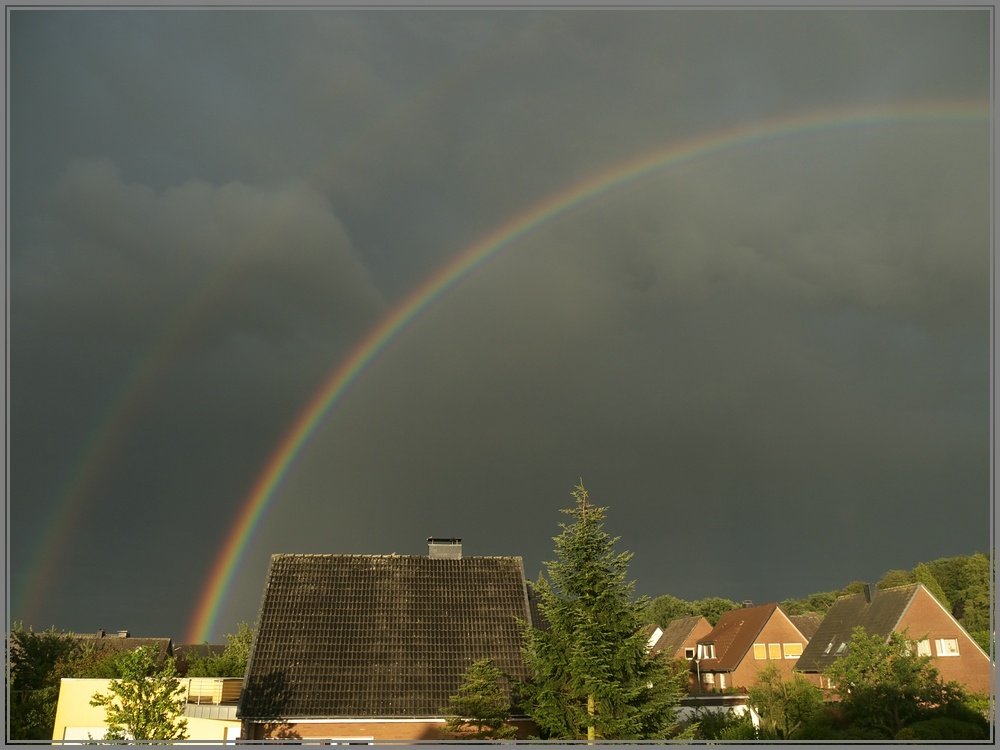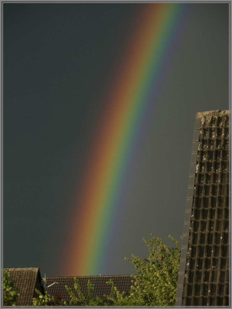 Gestern konnte ich für kurze Zeit diesen Regenbogen beobachten und habe (leider) durch mein Fenster die beiden Fotografien erstellt.