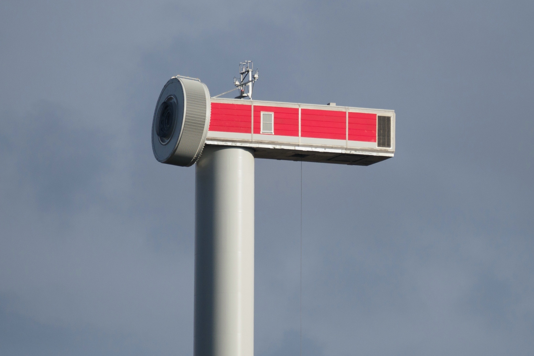 Bei den neuen Enercon-Anlagen, die zur Zeit hier errichtet werden,  liegt der Generator außerhalb des Maschinenhauses. Wirkt irgendwie disproportioniert.