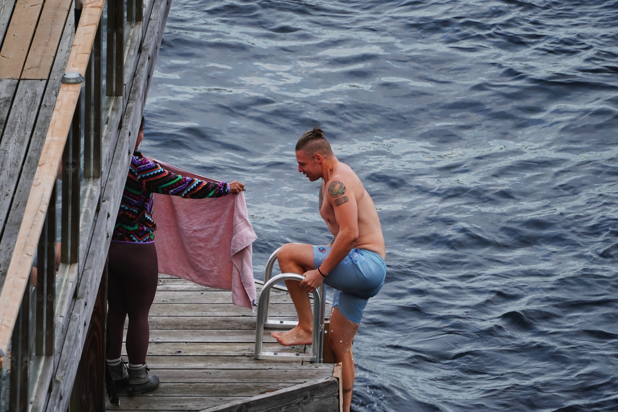 Danke fuer die Glueckwuensche. Es war schon toll, dass wir in Cottage gross genug mieten konnten um alle Familienmitglieder an einem Ort unterzubringen. Da entsatnden dann Wettbewerbe wie z.B. der Eisbaerwettbewerb. Nur drei nahmen and diesem Wettbewerb teil. Das Wasser war mal gerad 4 Grad C