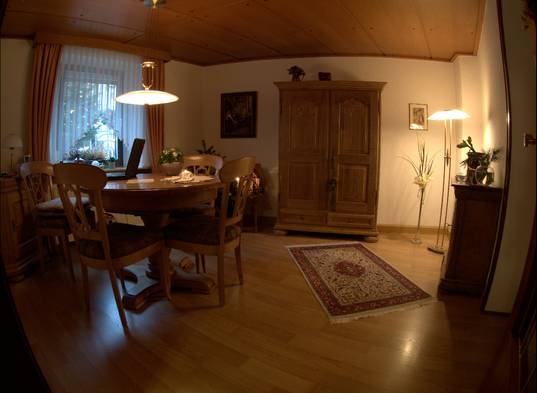 kirschm Geschrieben 10. Juli 2015 Share #13 Geschrieben 10. Juli 2015 (bearbeitet) Wenn's billig sein soll: irgendeine MFT (16MPix bevorzugt, Auslaufmodelle: Oly PM2 oder PL5) plus Oly 9mm Body Cap Lens Habe mal testweise einige Innenaufnahmen gemacht und diese (obligatorisch) mit Hugin defished... also ich würde damit auch meine eigenen Immobilien verkaufen... sieht richtig gut aus... und je nachdem, welcher Defishing-Algorithmus verwendet wird, kann man schön den Eindruck von Grösse und Weite vermitteln... oder halt ziemlich real darstellen... Mit den 9mm MFT mit dem Rücken/Stativ zur Wand kriegste halt wirklich 'alles' drauf... Hier der Thread zum 9mm Body Cap... habe da auch irgendwo mein eigenes Hugin-Defishing-Tutorial als PDF zur Verfügung gestellt: https://www.systemkamera-forum.de/topic/102577-olympus-9mm-fisheye-body-cap-lens/ bearbeitet 10. Juli 2015 von kirschm Link zum Beitrag Auf anderen Seiten teilen More sharing options...