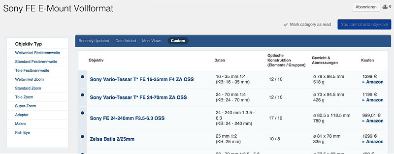 Sony FE Vollformat-Objektive - Alle auf einen Blick