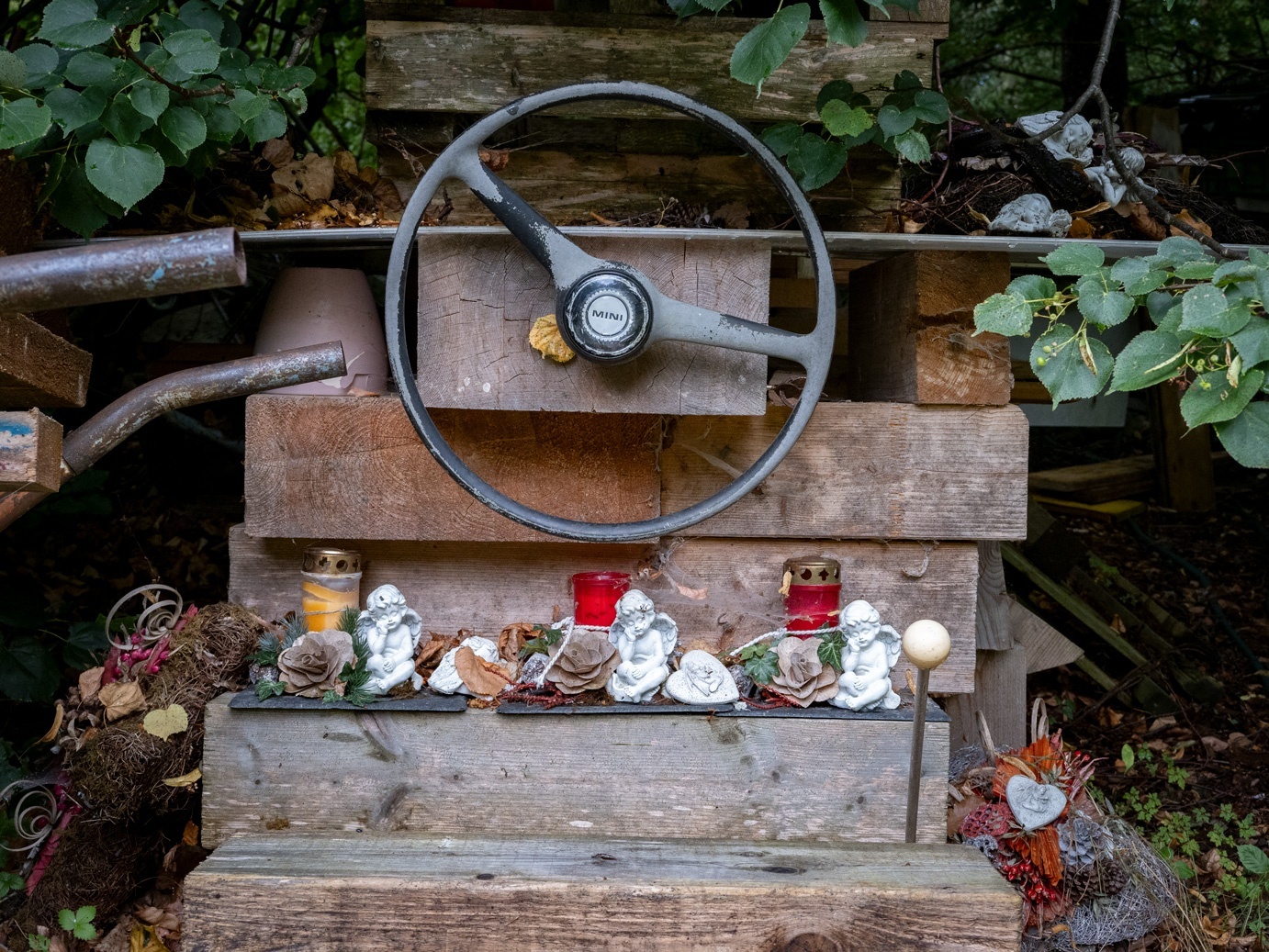 (womöglich war es  die letzte Fahrt des Mini-Besitzers?? und dann wurde ihm ein Denkmal gesetzt?)