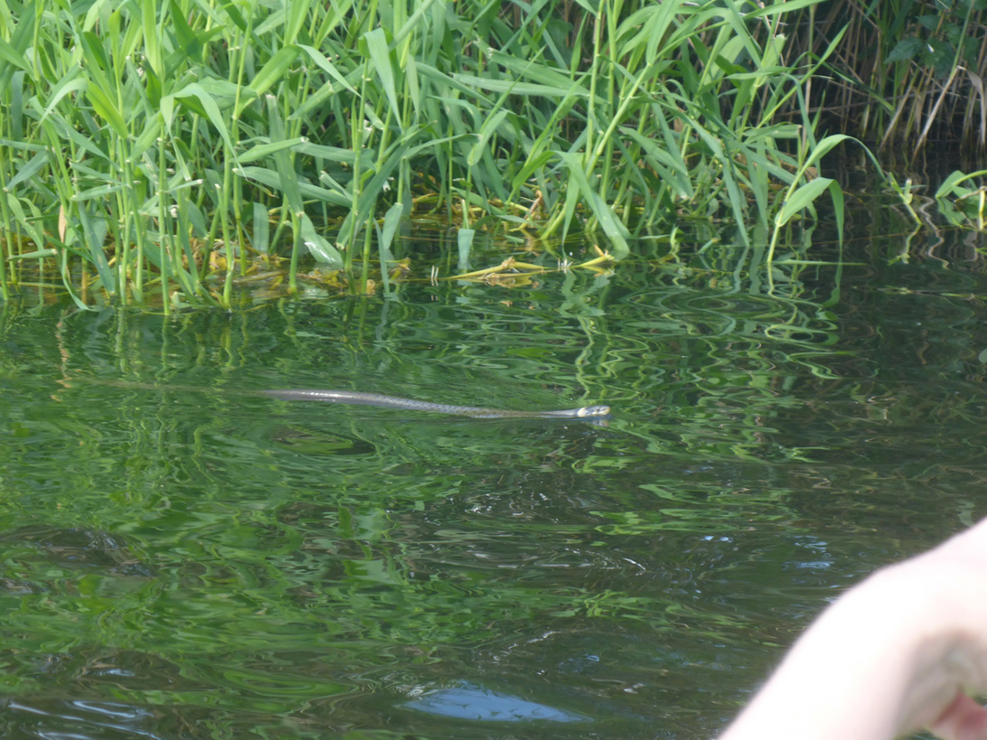 Die Ringelnatter war ca 2,5 Meter weg, das Wetter war gut, etwas Wind, gute Bedingungen