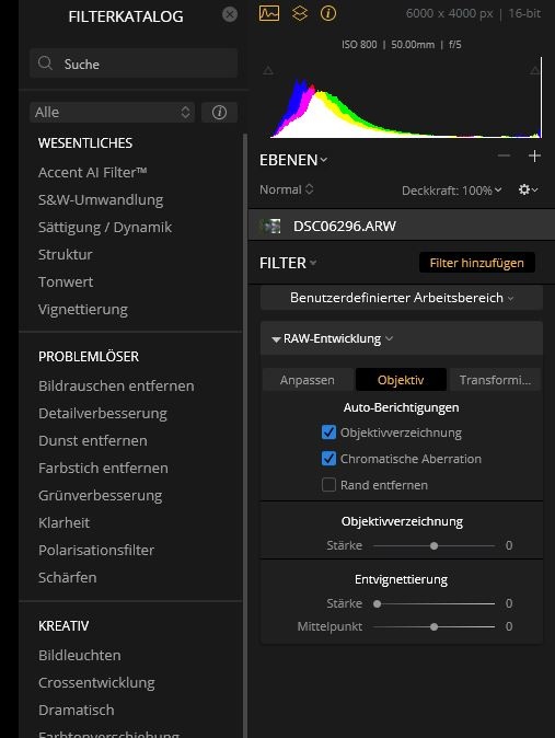• Wenn ich ein Foto bearbeite mit allen wichtigen Einstellungen (z.B. stürzende Linien beseitigen), eigentlich komplett fertig bin, dann aber doch noch einmal ein anderes Preset ausprobieren will, sind alle bisherigen Arbeitsschritte weg (die Linien stürzen also wieder), und ich fange wieder ganz von vorne an.