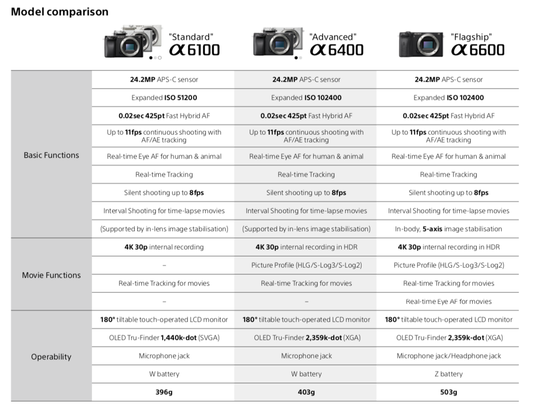 SKF Admin Geschrieben 28. August 2019 Share #1 Geschrieben 28. August 2019 Werbung (verschwindet nach Registrierung) Sony kündigt heute zwei neue APS-C Kameras an, über die schon lange spekuliert wurde: Sony A6100 Sony A6600 Beide Kameras kommen im Oktober auf den Markt und werden 899 € (Sony A6100 Gehäuse) bzw. 1599 € (Sony A6600 Gehäuse) kosten. Parallel wird das Sony E-Mount-System um zwei weitere Objektive erweitert, ein lichtstarkes Standardzoom und ein Super-Tele-Zoom. Bilder Sony A6600 Hallo, lieber Besucher! Als Forumsmitglied (kostet nix) würdest du hier ein Bild sehen… Einfach hier registrieren – Wir freuen uns immer über neue Mitglieder! Hallo, lieber Besucher! Als Forumsmitglied (kostet nix) würdest du hier ein Bild sehen… Einfach hier registrieren – Wir freuen uns immer über neue Mitglieder! Hallo, lieber Besucher! Als Forumsmitglied (kostet nix) würdest du hier ein Bild sehen… Einfach hier registrieren – Wir freuen uns immer über neue Mitglieder! Hallo, lieber Besucher! Als Forumsmitglied (kostet nix) würdest du hier ein Bild sehen… Einfach hier registrieren – Wir freuen uns immer über neue Mitglieder! Hallo, lieber Besucher! Als Forumsmitglied (kostet nix) würdest du hier ein Bild sehen… Einfach hier registrieren – Wir freuen uns immer über neue Mitglieder! display Hallo, lieber Besucher! Als Forumsmitglied (kostet nix) würdest du hier ein Bild sehen… Einfach hier registrieren – Wir freuen uns immer über neue Mitglieder! Bilder Sony A6100 Hallo, lieber Besucher! Als Forumsmitglied (kostet nix) würdest du hier ein Bild sehen… Einfach hier registrieren – Wir freuen uns immer über neue Mitglieder! Hallo, lieber Besucher! Als Forumsmitglied (kostet nix) würdest du hier ein Bild sehen… Einfach hier registrieren – Wir freuen uns immer über neue Mitglieder! Hallo, lieber Besucher! Als Forumsmitglied (kostet nix) würdest du hier ein Bild sehen… Einfach hier registrieren – Wir freuen uns immer über neue Mitglieder! Hallo, lieber Besucher! Als Forumsmitglied (kostet nix) würdest du hier ein Bild sehen… Einfach hier registrieren – Wir freuen uns immer über neue Mitglieder! Hallo, lieber Besucher! Als Forumsmitglied (kostet nix) würdest du hier ein Bild sehen… Einfach hier registrieren – Wir freuen uns immer über neue Mitglieder! Hallo, lieber Besucher! Als Forumsmitglied (kostet nix) würdest du hier ein Bild sehen… Einfach hier registrieren – Wir freuen uns immer über neue Mitglieder! Hallo, lieber Besucher! Als Forumsmitglied (kostet nix) würdest du hier ein Bild sehen… Einfach hier registrieren – Wir freuen uns immer über neue Mitglieder! Die offizielle Pressemitteilung zu Sony A6600 und Sony A6100 Die neuen spiegellosen Systemkameras Alpha 6600 und Alpha 6100 von Sony erweitern die APS-C-Reihe und punkten mit hochmodernen Technologien. Mit führender Autofokusleistung, herausragender Bildqualität und neuesten Videotechnologien erhalten Fotografen mit beiden Modellen eine kompakte und leichte Kamera. Die Sony „One Mount“-Lösung für APS-C- wie auch für Vollformatkameras sorgt für große Vielseitigkeit, um allen Ansprüchen bei Foto- und Videoaufnahmen gerecht zu werden. Zusammen mit dem neuen E 16-55 Millimeter F2.8 G Standard-Zoomobjektiv sowie dem E 70-350 Millimeter F4.5-6.3 G OSS Super-Telezoom-Objektiv bieten sich neue kreative Möglichkeiten für Nutzer von APS-C-Kameras von Sony. Berlin, 28. August 2019. Die neue Alpha 6600 wurde als vielseitige Kamera für die Erfordernisse anspruchsvoller Fotografen und Videofilmer konzipiert. Sie eignet sich hervorragend für unterschiedlichste Aufnahmesituationen und Nutzertypen. Die Alpha 6100 ist für Fotografen entwickelt worden, die den Schritt zur Wechselobjektivkamera machen und in verschiedensten Situationen hochwertige Fotos und Filme aufnehmen wollen. Die Kernstücke der beiden neuen spiegellosen Kameras sind ein Exmor 24,2 MP1- CMOS-Bildsensor und der neueste BIONZ X Bildprozessor mit Front-End-LSI, die von den Vollformatkameras von Sony übernommen wurden. Dieses leistungsstarke Trio verbessert die allgemeine Bildqualität und Leistung für alle Foto- und Filmgenres. Zudem bieten beide Kameras einen Autofokus mit 0,02 Sekunden2 Reaktionszeit. Der Phasendetektions-Autofokus mit 425 Punkten deckt rund 84 Prozent des Sensors ab. In Kombination mit dem Kontrastautofokus mit 425 Punkten sorgen beide Kameras für eine zuverlässige Autofokusleistung auch unter schwierigen Lichtverhältnissen. Beide Modelle sind zudem mit Echtzeit-Tracking ausgestattet, das den neuesten Algorithmus von Sony mit KI3-basierter Objekterkennung nutzt, sodass Motive auch über den Touchscreen auf der Rückseite ultrascharf aufgenommen werden. Zudem bieten beide Modelle einen Autofokus mit Augenerkennung in Echtzeit sowie die neueste Version der Augen-Autofokus-Technologie von Sony. Diese KI-basierte Objekterkennung erfasst die Augen-daten in Echtzeit und verarbeitet sie direkt. Das optimiert Genauigkeit, Geschwindigkeit und Tracking-Leistung des Autofokus mit Augenerkennung bei Menschen und Tieren4, sodass Fotografen sich ganz auf die Bildaufnahme konzentrieren können5. Blick fürs Detail Die Alpha 6600 und die Alpha 6100 wurden zudem - aufgrund von Nutzer-Feedback zu den bestehenden APS-C Kameras - mit weiteren Funktionen zur Optimierung der Benutzerfreundlichkeit ausgestattet. Die von den Vollformatmodellen übernommenen Algorithmen für natürliche Farben insbesondere bei Hauttönen, sorgen für eine verbesserte Farbwiedergabe. Hochauflösende integrierte 4K6 Filmaufnahmen mit Pixelauslesung ohne Pixel-Binning im Super-35-mm-Format und mit unkomplizierter Smartphone-Übertragung sind über die Imaging Edge Mobile Anwendung7möglich. Die Intervallaufnahmefunktion8 ermöglicht atemberaubende Zeitrafferfilme. Der 3,0-Zoll-LCD-Touchscreen mit etwa 921.000 Pixeln lässt sich bei beiden Modellen um 180° neigen. So können die Aufnahmen in jeder Situation gut einge