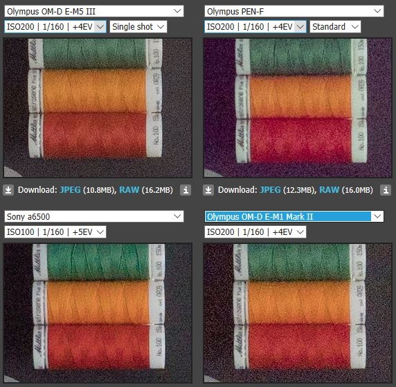Mindesten den Farbstich im Bild der Pen-F siehtst Du aber schon? Den sieht man auch bei kleinen Bildgrößen.