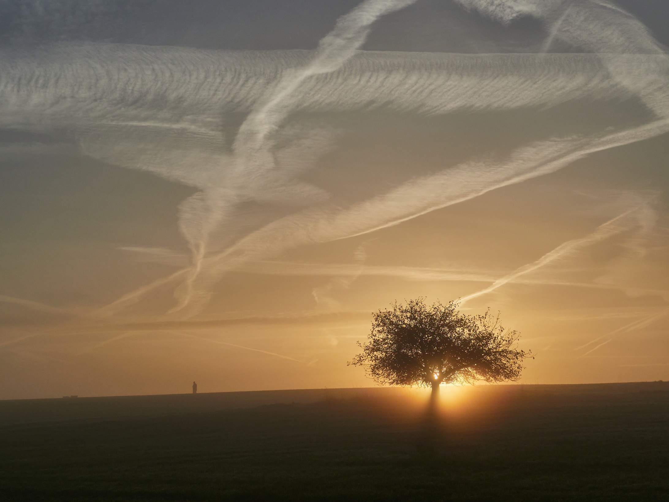 Eine wunderschöne Landschaftsaufnahme mit diesem Glow um den Baum, dem pastellfarbenen Himmel und den Wolkenspuren! Meinen Glückwunsch zu diesem Foto!
