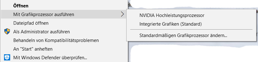 pizzastein Geschrieben 3. November 2020 Share #20 Geschrieben 3. November 2020 vor einer Stunde schrieb tgutgu: Über das NVIDIA Control Panel habe ich keine Möglichkeit gefunden zu erzwingen, dass DeNoise AI die interne Grafikkarte verwendet. Wenn ich in der Windows 10 Systemsteuerung unter dem Punkt Anzeige für DeNoise AI festlege, dass dies im Energiesparmodus laufen soll (d.h. die interne Grafikkarte verwenden soll) hat dies bzgl. der Behebung des Fehlers keine Auswirkung. Bei mir (Laptop mit sowohl integrierter Intel-Grafik wie auch extra NVidia-Grafik) sehe ich zwei Möglichkeiten zur Wahl das Grafikprozessors. In der NVidia-Systemsteuerung sieht das so aus: Hallo, lieber Besucher! Als Forumsmitglied (kostet nix) würdest du hier ein Bild sehen… Einfach hier registrieren – Wir freuen uns immer über neue Mitglieder! Der andere, einfachere Weg geht über einen Rechtsklick auf das Programm-Icon: Hallo, lieber Besucher! Als Forumsmitglied (kostet nix) würdest du hier ein Bild sehen… Einfach hier registrieren – Wir freuen uns immer über neue Mitglieder! tgutgu hat darauf reagiert 1 Link zum Beitrag Auf anderen Seiten teilen More sharing options...